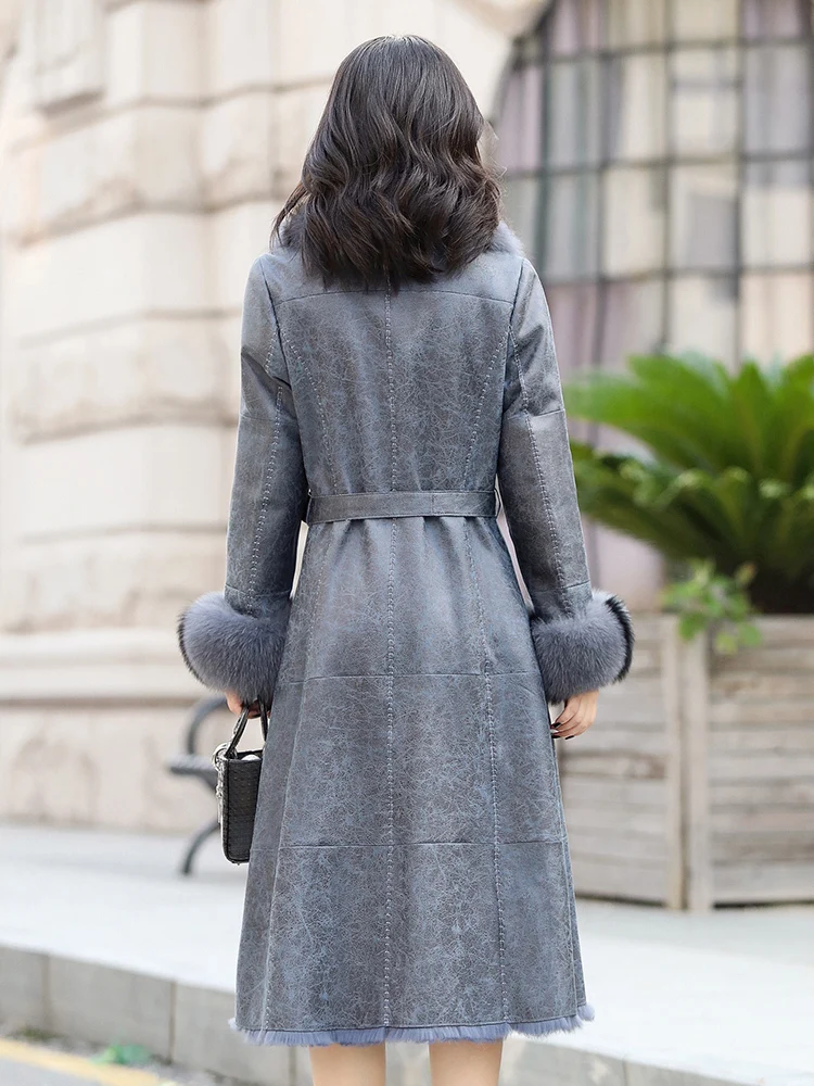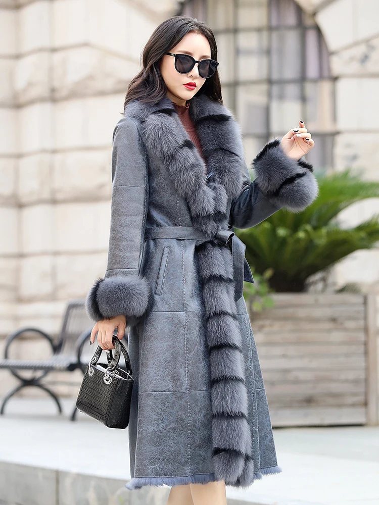 Special Offer Natürliche Winter Echt Pelzmantel Frauen Lange Fuchs Pelz Wildleder Leder Jacke Weibliche Vintage Doppel Konfrontiert Kaninchen Pelz Mantel Top Hiver 19807 Discount 30% Today!