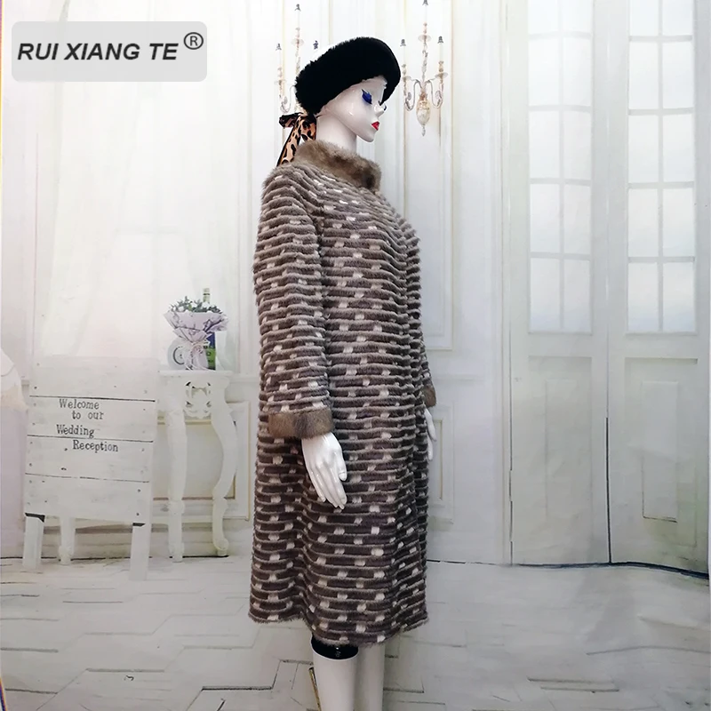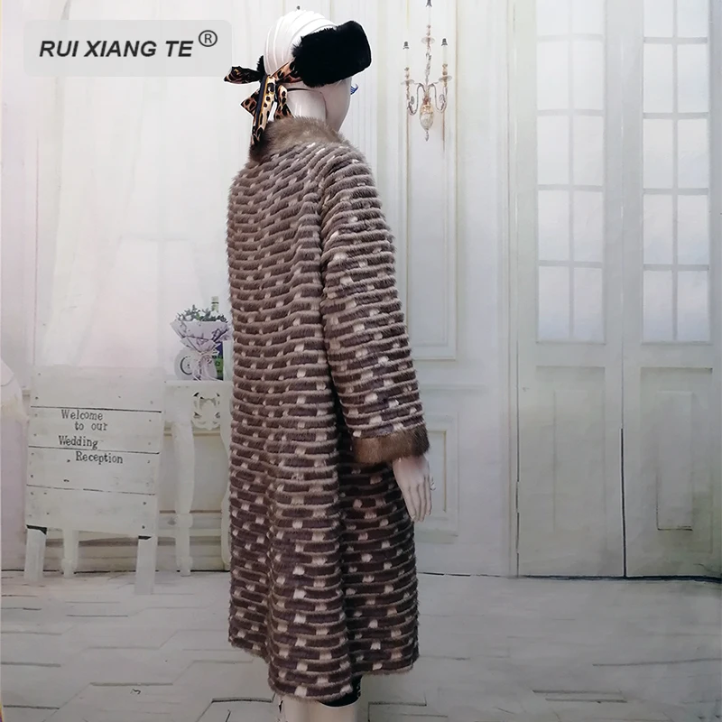Special Offer RuiXiangTe Frauen Echt Pelzmantel Nerz Streifen Genäht Jacke Warme Winter Real Nerz Oberbekleidung Rex Kaninchen Stricken Langen Mantel Discount 0% Today!