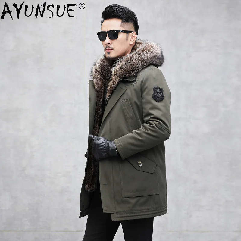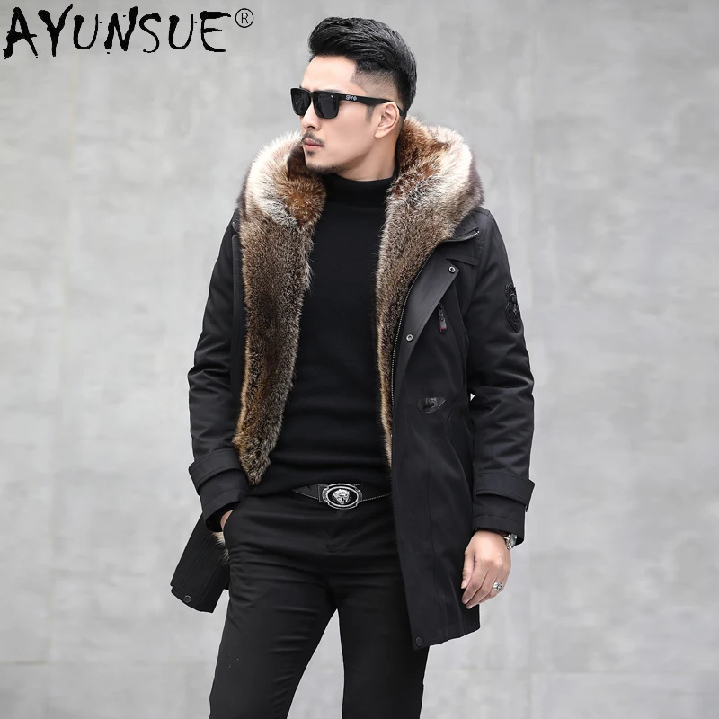 Special Offer AYUNSUE Winter Jacke Männer Kleidung Mit Kapuze Parka Mann Jacken Echt Waschbären Pelz Männlichen 5XL Kaninchen Pelz Sleeves ErkeklerLXR821 Discount 50% Today!