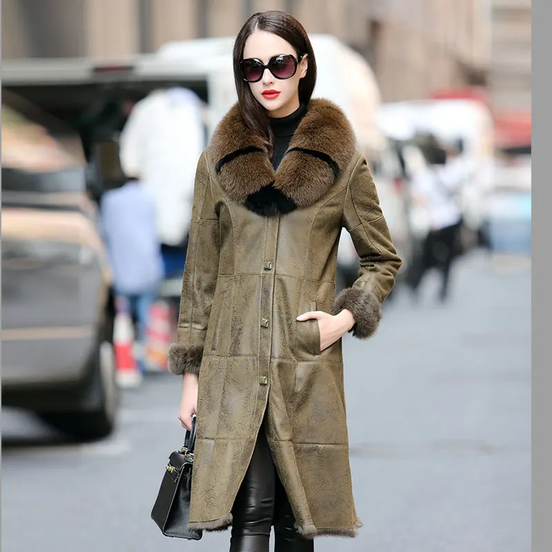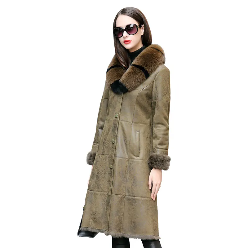 Special Offer AYUNSUE Winter Mantel Frauen Doppel Konfrontiert Echten Pelzmantel Weibliche Luxus Kaninchen Fell Mantel Frauen Fuchs Pelz Kragen Echt Leder Jacke MY Discount 50% Today!