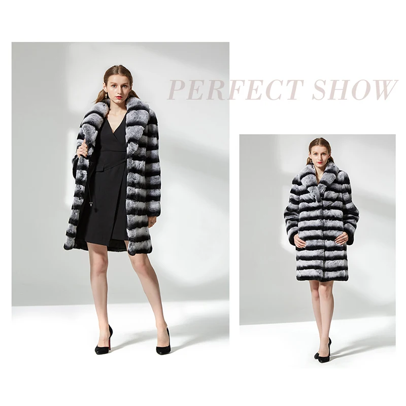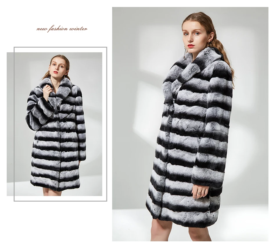 Special Offer Winter Mantel Frauen Chinchilla Farbe Natürliche Kaninchen Pelz Jacke Lange Hülse Drehen-Unten Kragen Dicken Mode Warme Mantel Discount 0% Today!