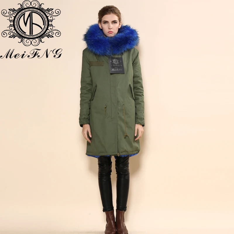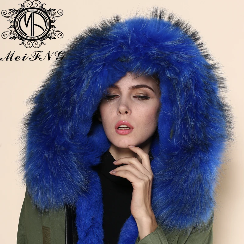 Special Offer GroĂhandel Mode Frauen Echt Fox Fell Kapuze Parka & Blau Fuchs Pelz Mantel Mit Pelz Kragen Discount 0% Today!