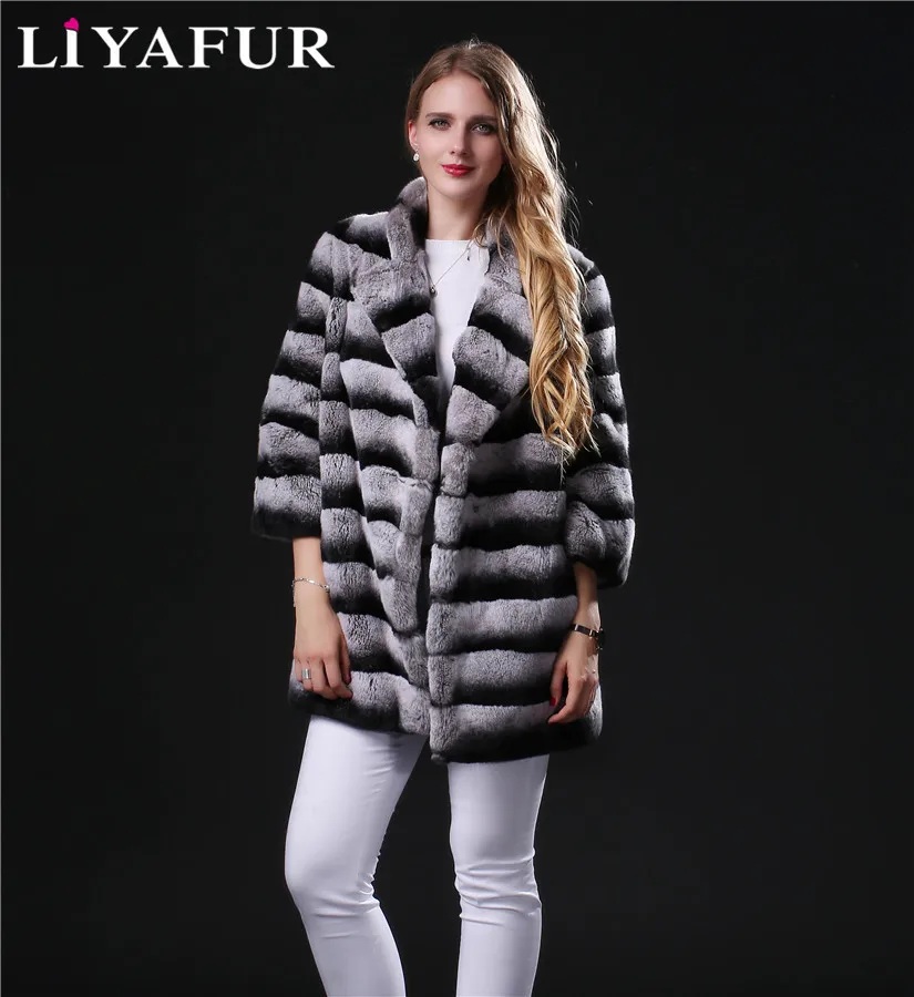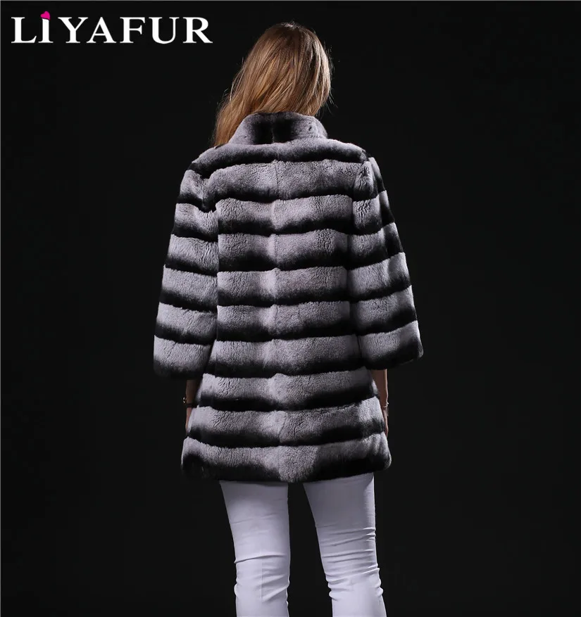 Special Offer LIYAFUR 2018 Neue Echt Echte Natürliche Chinchilla Rex Kaninchen Pelz Winter Streifen Mantel Mantel Für Frauen Pelzigen Weibliche Mäntel Jacke Discount 0% Today!