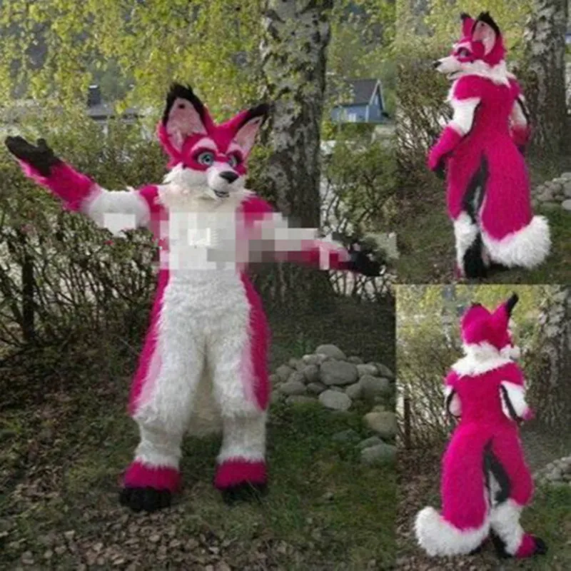 Special Offer Halloween Sexy Fursuit Lange Fur Red Husky Maskottchen Kostüm Anzug Erwachsene Wolf Fuchs Hund Kostüm Cosplay Party Spiel Kleid Mädchen Kostüm Discount 10% Today!