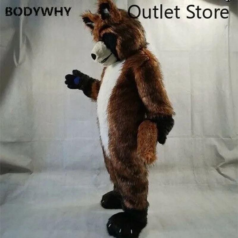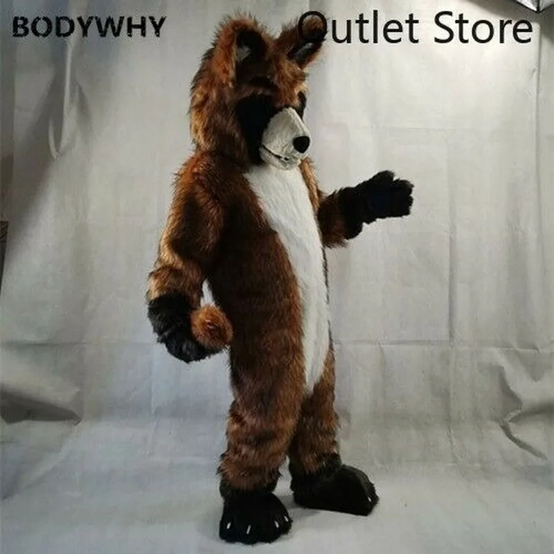 Special Offer Braun Lange Husky Fuchs Hund Pelzigen Anzug Maskottchen Kostüm Cosplay Party Kleid Fursuit Cartoon Outfit Karneval Halloween Weihnachten Ad Kleidung Discount 50% Today!