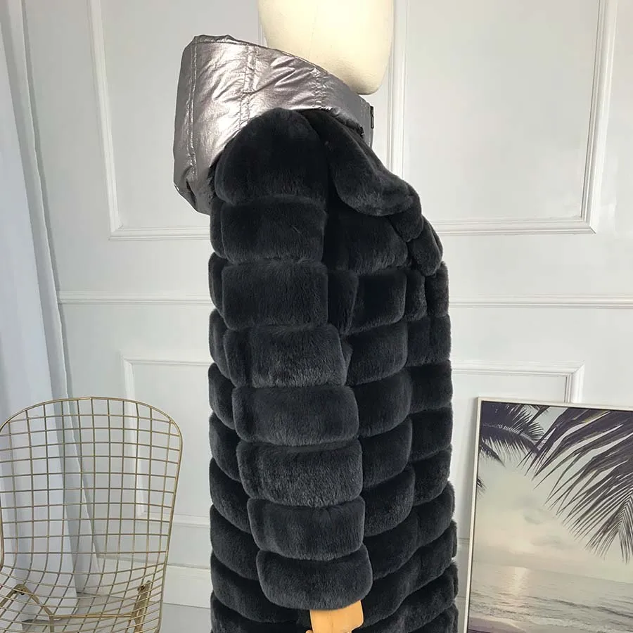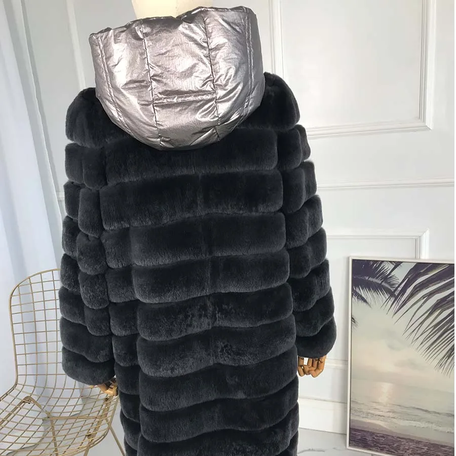 Special Offer Lange Stil Neueste Mode Echt Rex Kaninchen Pelz Mantel Frauen Kleidung Dicke Warme Mit Abnehmbare Abnehmbare Unten Haube Outwear Plus B Discount 50% Today!