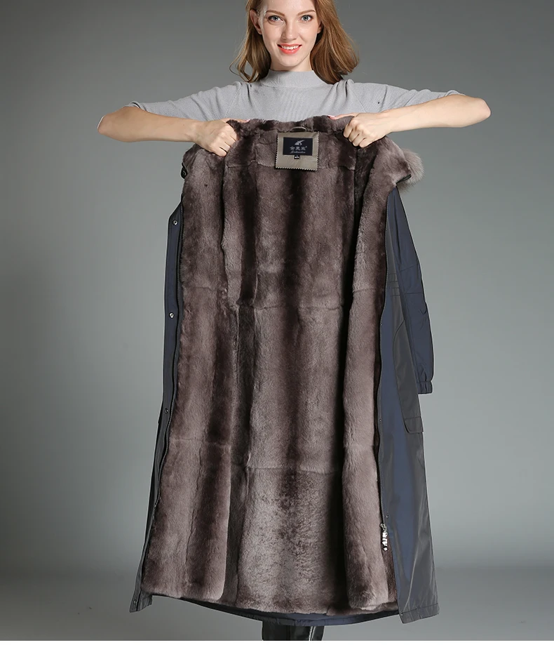 Special Offer AYUNSUE Natürliche Kaninchen Pelz Liner Luxus Parka Echtpelz Mantel Winter Jacke Frauen Fuchs Pelz Kragen Koreanische Lange Graben Mäntel MY3753 Discount 50% Today!