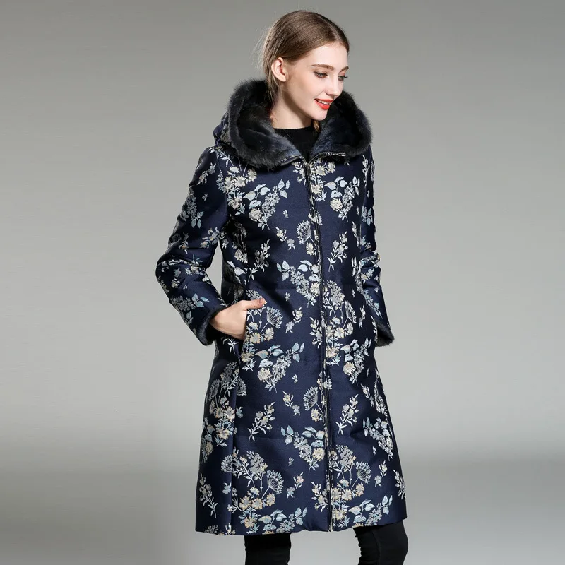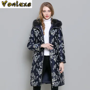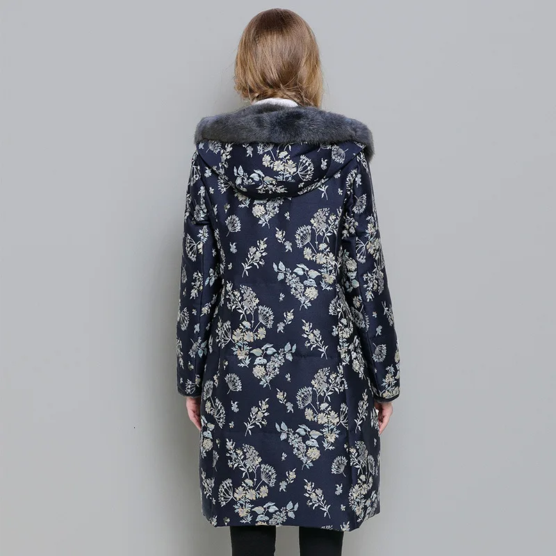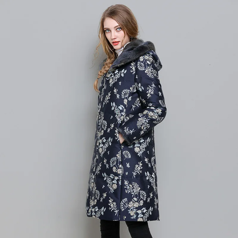 Special Offer Natürliche Echt Kaninchen Pelz Kragen Mit Kapuze Lange Jacke Frauen Mantel Parka Damen Floral Gedruckt Winter Warm Outwear Plus Größe Discount 80% Today!