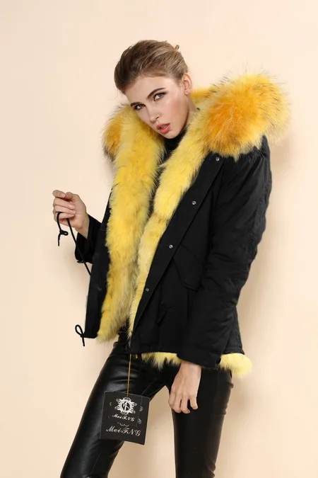 Special Offer Neueste Stil Schwarz Parka Mit Gelb Echt Fuchs Gefüttert Große Waschbären Pelz Kragen Großen Größe Parka Für Frauen Discount 0% Today!