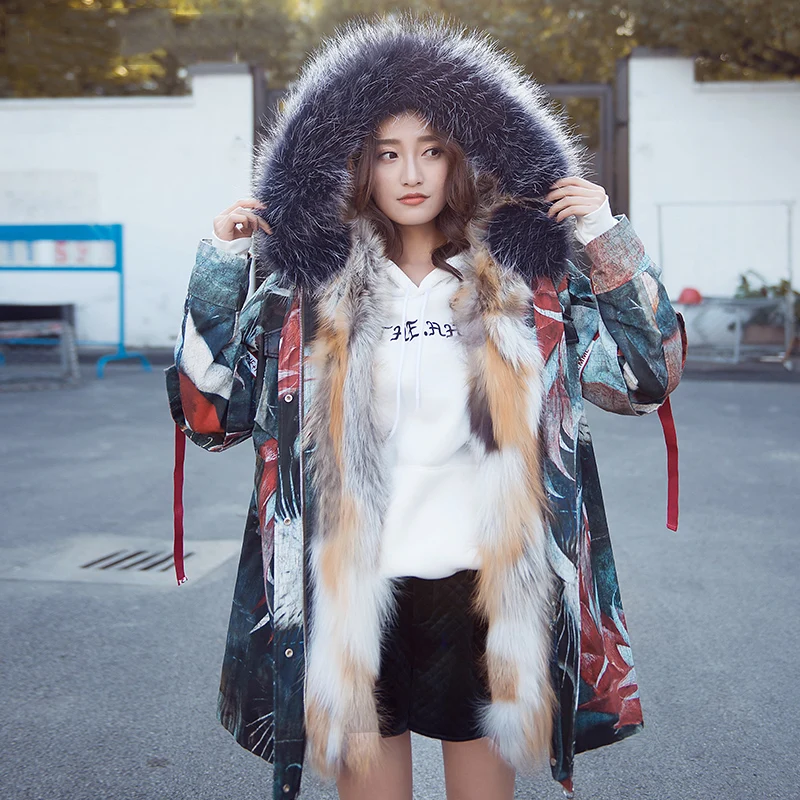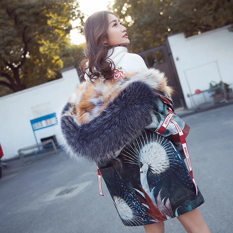 Special Offer Die Neue Parker Mantel Verdicken Fuchs Pelz Kragen Weibliche Winter Warm Mit Kapuze Parkas Rex Kaninchen Pelz Liner Lange Druck Chic MĂ€ntel Frau Discount 45% Today!