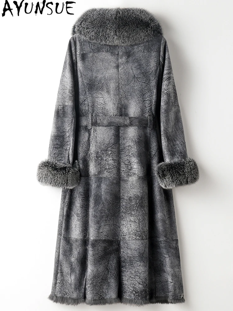 Special Offer AYUNSUE 2020 Natürliche Kaninchen Fell Mantel Frauen Lange Weibliche Jacke Fuchs Pelz Kragen Warme Winter Kleidung Mode Elegante Ropa De Mujer Discount 50% Today!