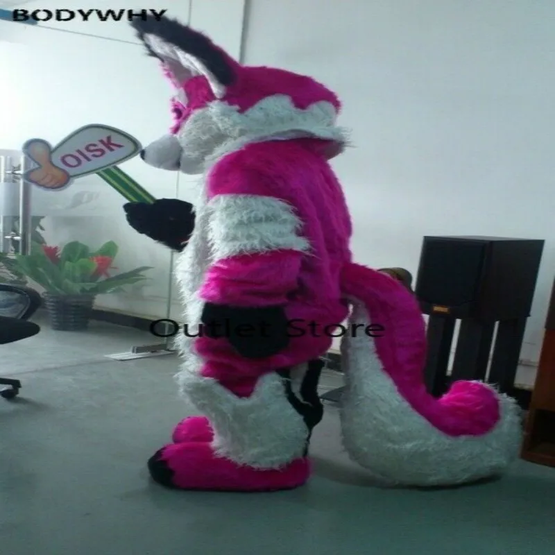 Special Offer Lange Pelz Rosa Fuchs Hund Fursuit Maskottchen Kostüm Ostern Cosplay Party Kleid Cartoon Outfit Karneval Halloween Weihnachten Ostern Ad Kleidung Discount 50% Today!