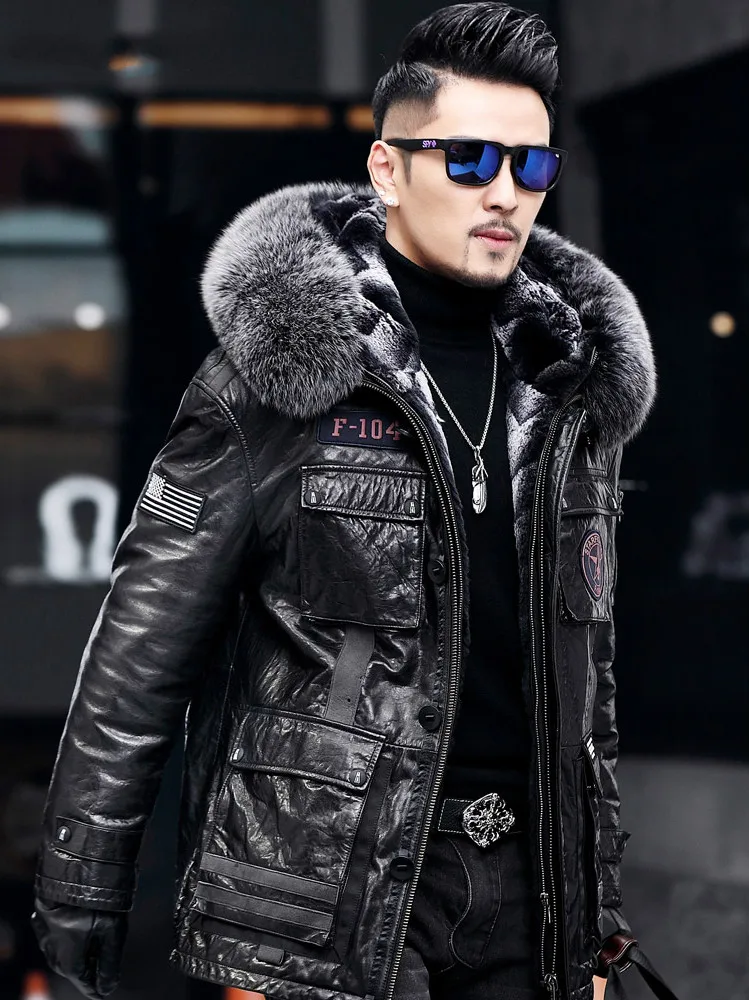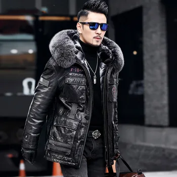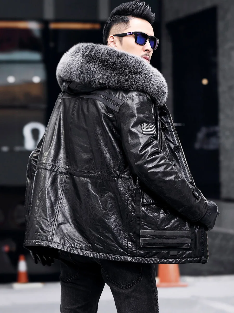 Special Offer Winter Mode Neue Fuchs Pelz Kragen MĂ€nner Echtes Leder Kleidung Mit Kapuze Lammfell Jugend Mantel Schwarz GröĂe L - 5XL Discount 60% Today!