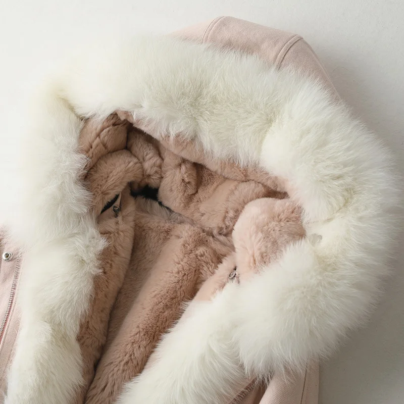 Special Offer Echt Parka Pelz Mantel Winter Mantel Frauen Kaninchen Pelz Liner Warme Jacke Frauen Fuchs Pelz Kragen Korean Outwear Manteau Femme MEIN Discount 90% Today!