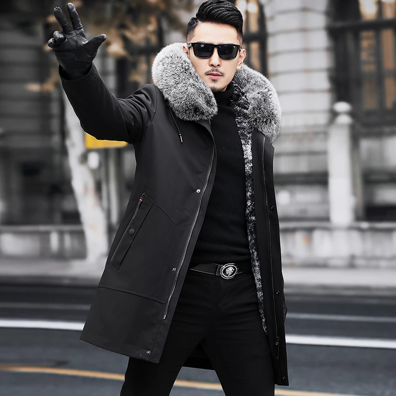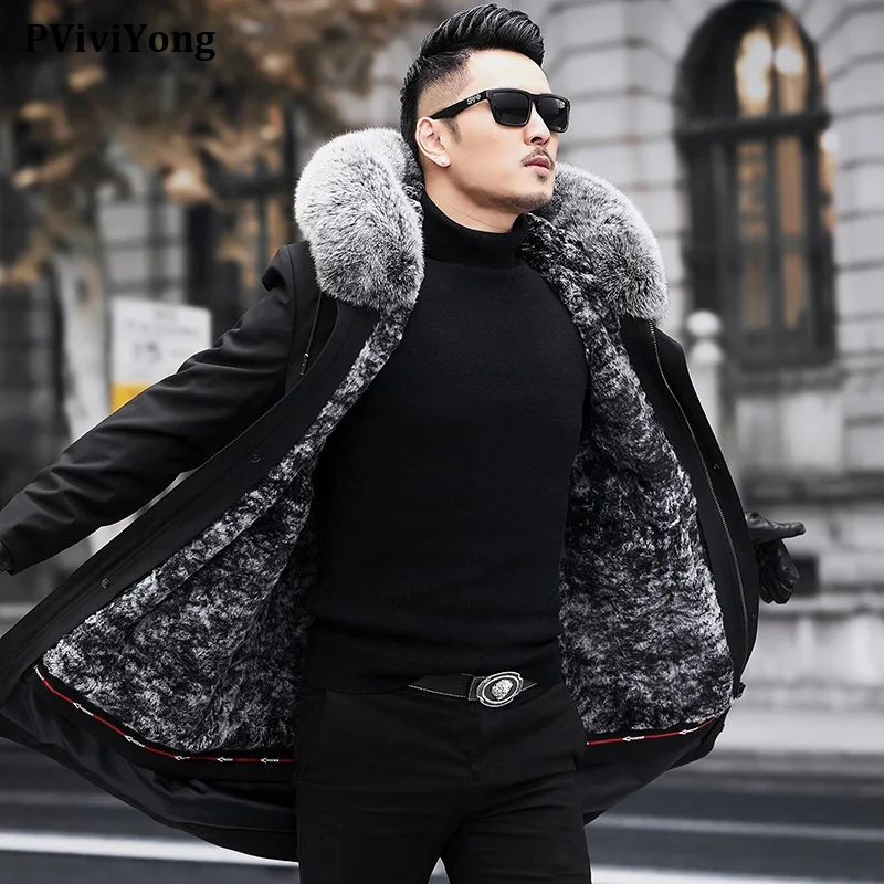 Special Offer PViviYong 2020 Winter Hohe Qualität Echt Leder Jacke Männer, Silber Fuchs Kragen Kaninchen Liner Mantel Männer Parka M1882 Discount 0% Today!