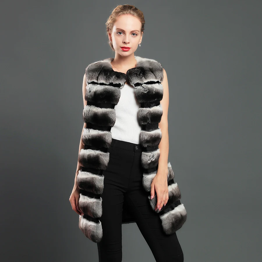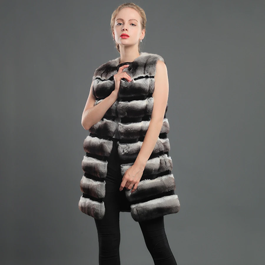 Special Offer Pelz Weste Frauen Lange Echte Rex Kaninchen Pelz Jacke Mode Chinchilla Farbe Weste Hohe QualitÀt Discount 0% Today!