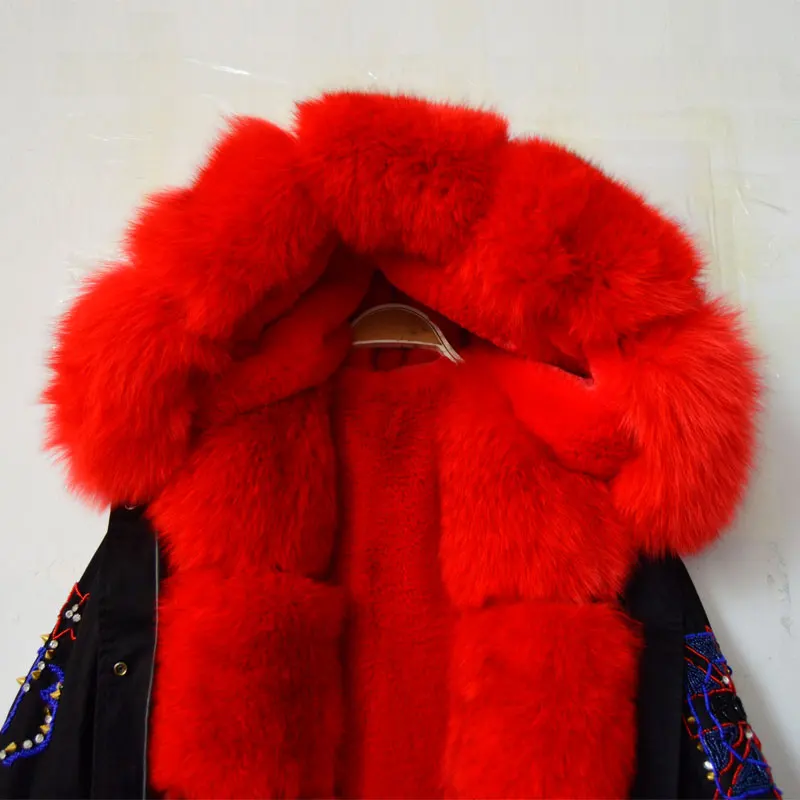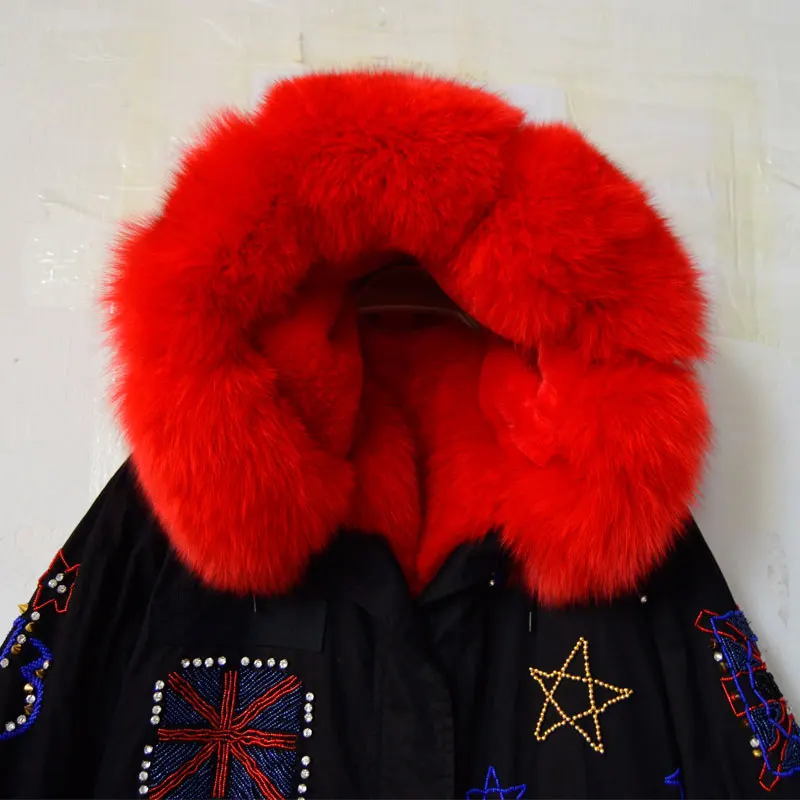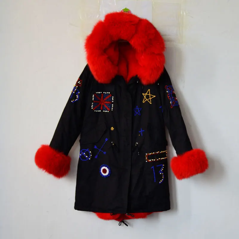 Special Offer Neue Ankunft Schwarz Perlen Frauen Jacke Rot Faux Pelz Futter Und Fuchs Pelz Kragen Manschette, UK Perlen Lange Stil Mantel Discount 0% Today!