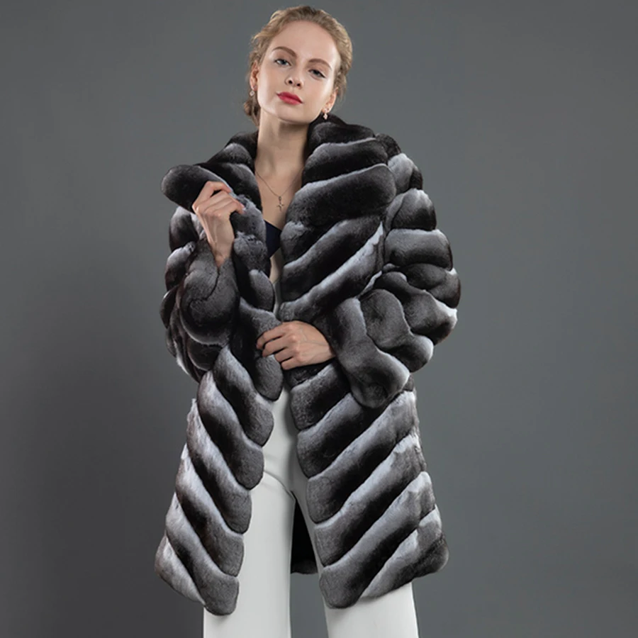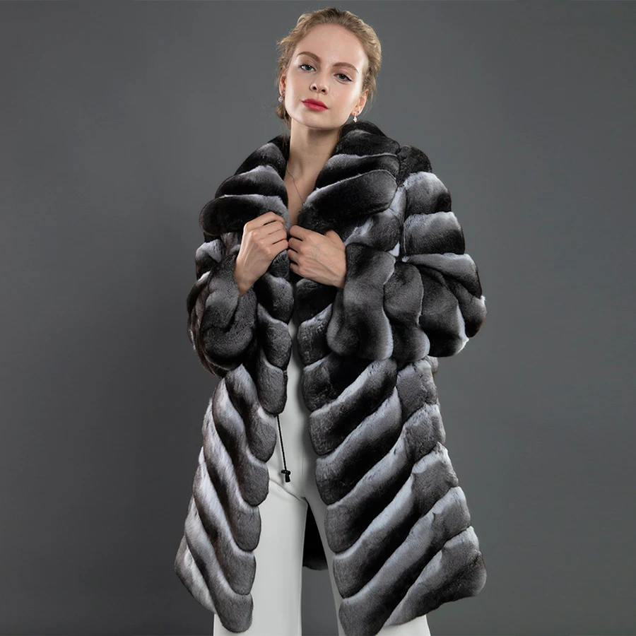 Special Offer Pelzmantel Frauen Mode TurnDown Kragen Jacke Mid-Lange Outwear Chinchilla Farbe Top Verkauf Discount 0% Today!