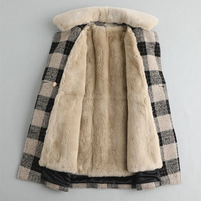 Special Offer Natürliche Weibliche Echt Kaninchen Liner Wolle Mantel Winter Jacke Frauen Nerz Pelz Kragen Alpaka Woolen Mäntel MY4371 Discount 30% Today!