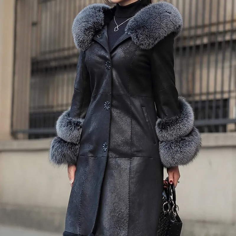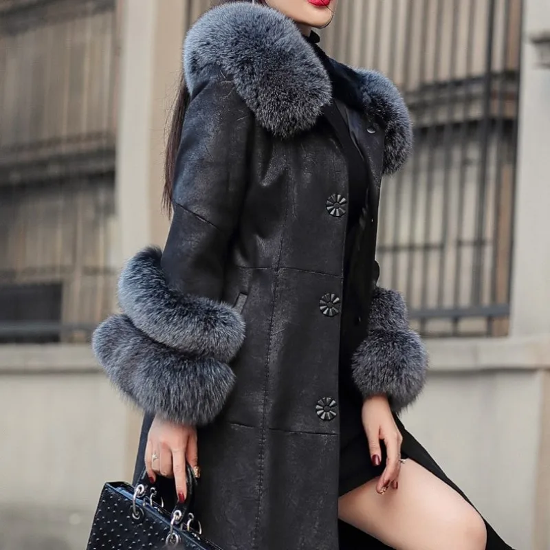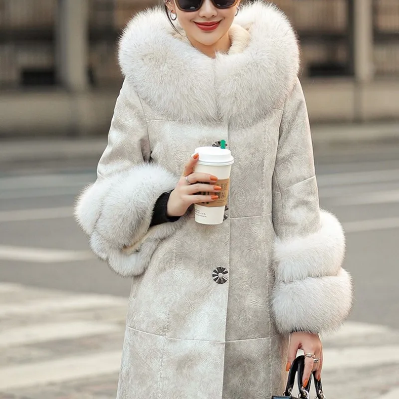 Special Offer Frauen Winter Kaninchen Fell Lammfell Mantel Luxus Elegante Medium Lange Fuchs Pelz Kragen Mit Kapuze Jacken OL Stil Retro Warme Dame MĂ€ntel Discount 35% Today!