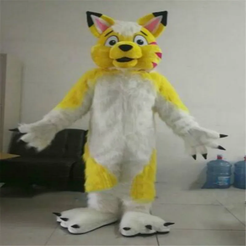 Special Offer Halloween Lange Pelz Gelb Husky Wolf Hund Maskottchen Kostüm Fursuit Party Kleid Outfits Karneval Halloween Weihnachten Ostern Ad Kleidung Discount 50% Today!