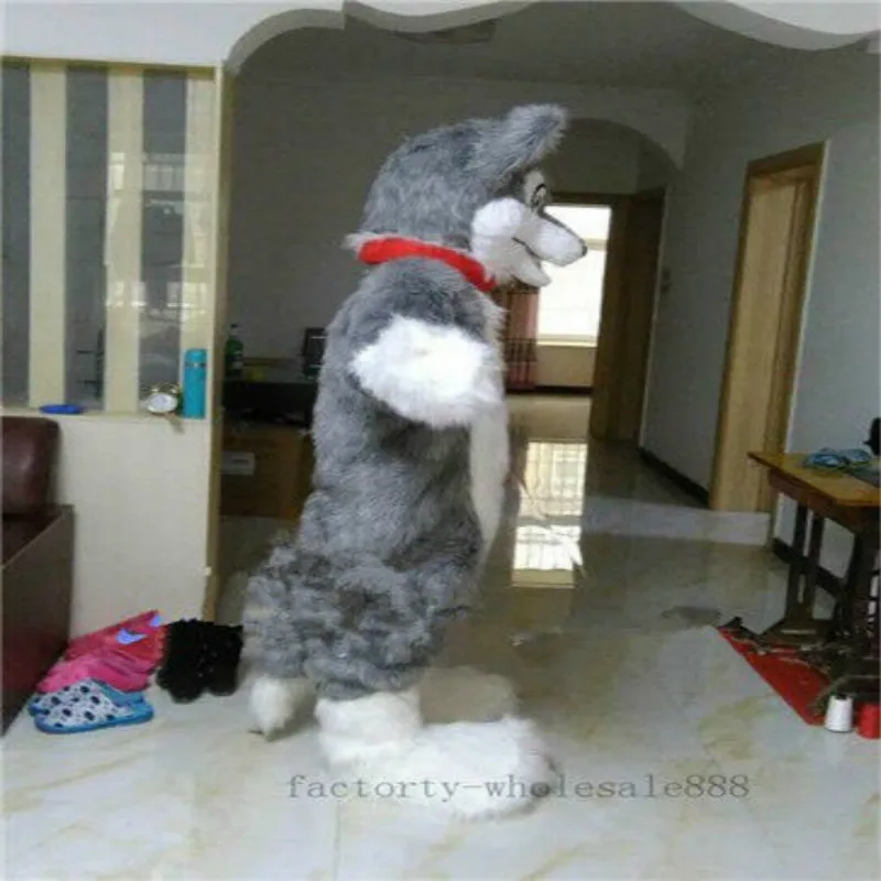 Special Offer Lange Fursuit Grau Husky Hund Wolf Fuchs Maskottchen Kostüm Kleid Erwachsene Halloween Fursuit Cartoon Outfit Karneval Weihnachten Ostern Ad Kleidung Discount 50% Today!