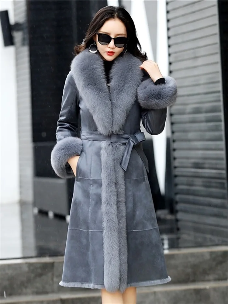 Special Offer AYUNSUE Natürliche Kaninchen Pelz Mantel Lange Weibliche Jacke Winter Kleidung Frauen Echt Fox Pelz Kragen Plus Größe 4xl Abrigo Mujer AM118088 Discount 50% Today!