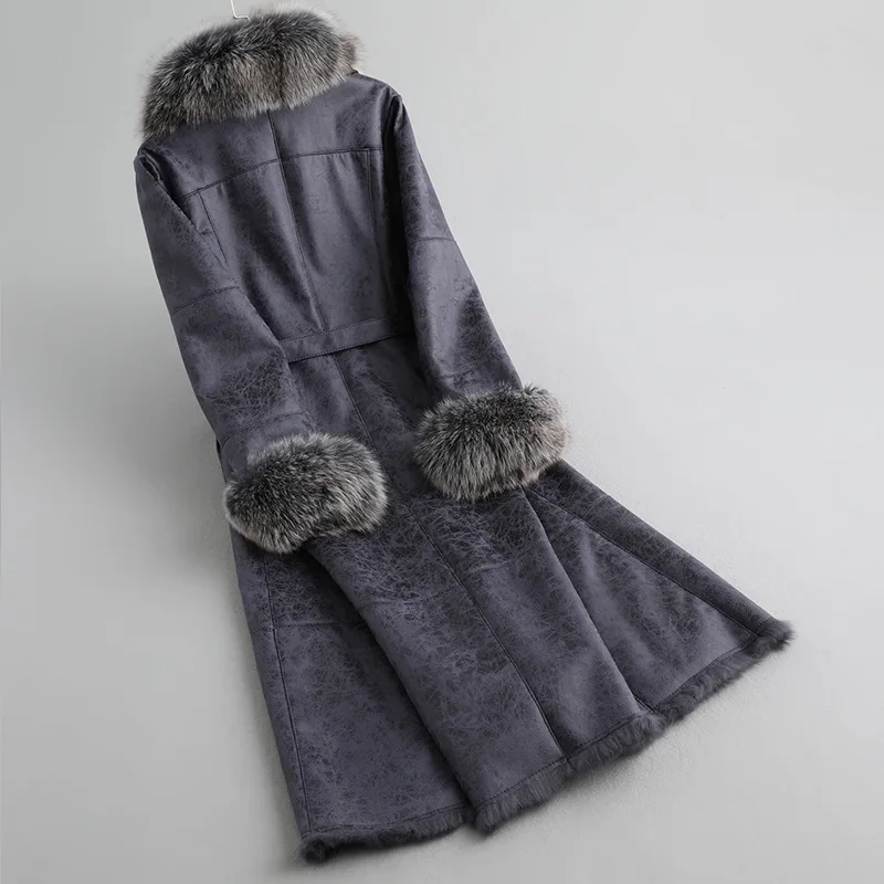 Special Offer Frauen Doppel Winter Konfrontiert Mantel Weibliche Luxus Kaninchen Jacken Fuchs Pelz Kragen Echt Leder Jacke MY Discount 91% Today!