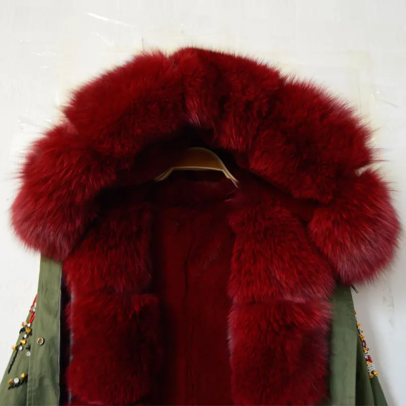 Special Offer Winter Mode Luxus Amerika Perlen Jacke In Frauen Jacken Wein Rot Faux Pelz Liner Fuchs Pelz Kragen Manschette Pelz Mantel Discount 0% Today!
