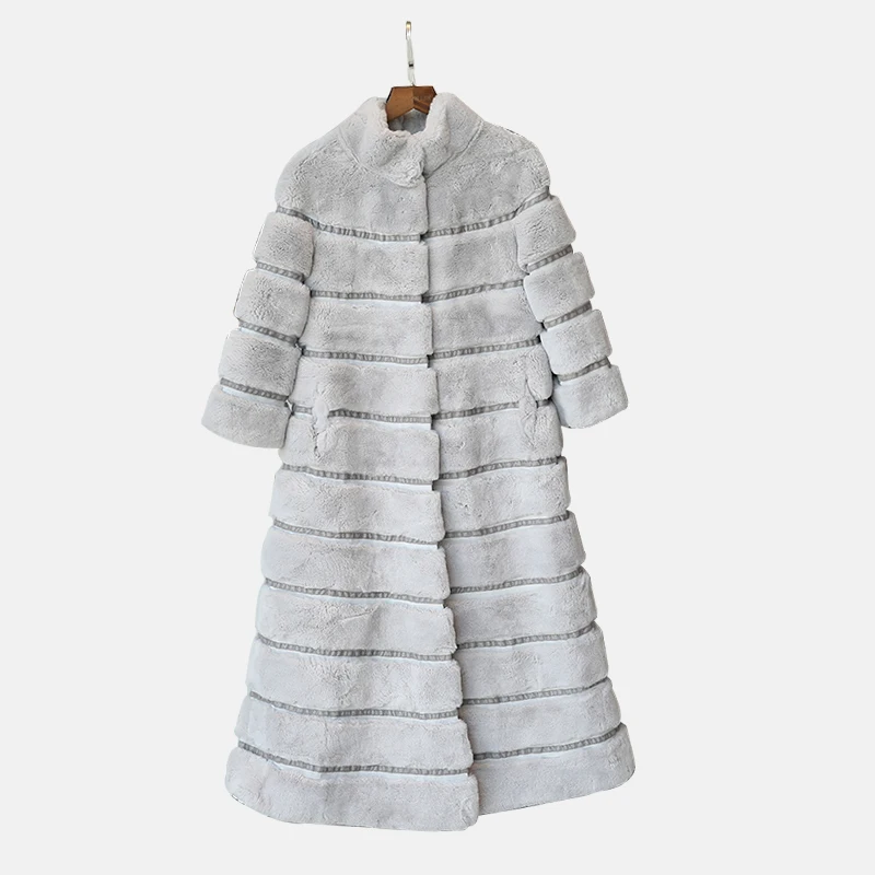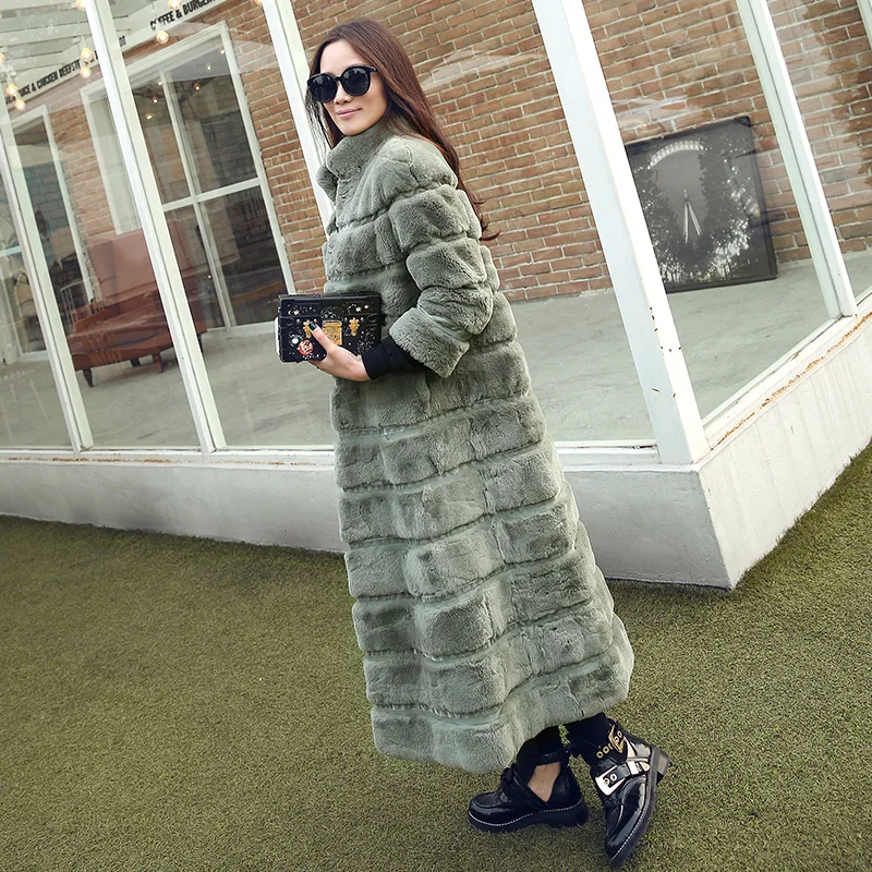 Special Offer X-lange 120 Cm Natürliche Rex Kaninchenfell Mäntel Oberbekleidung Frauen Welle Schnitt Stehkragen Echtpelz Jacken Frau Winter Pelz Mantel Discount 0% Today!