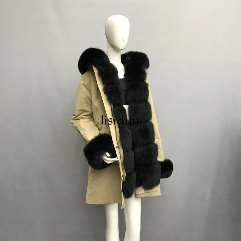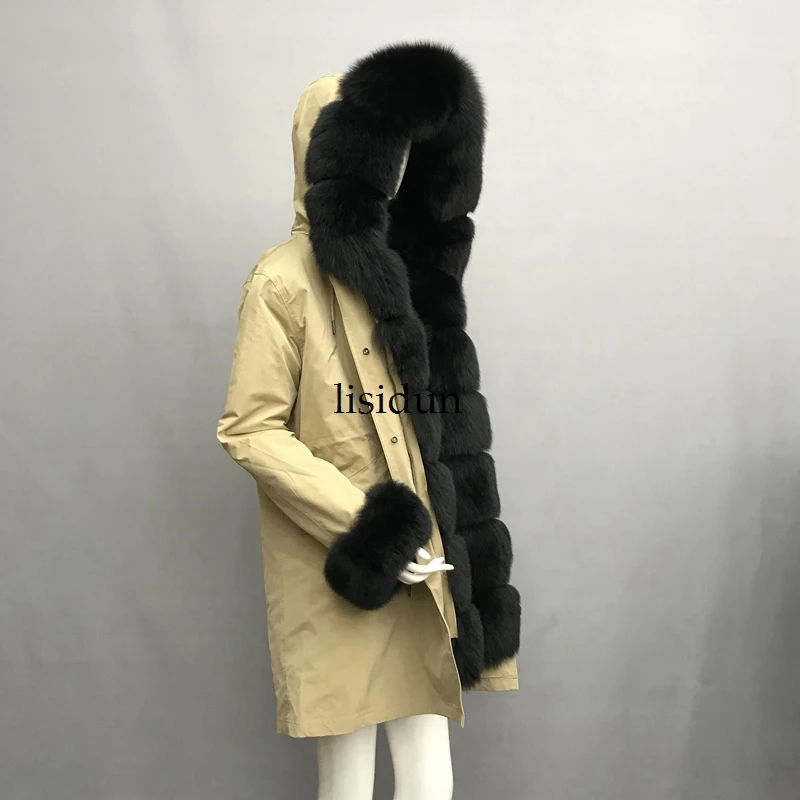 Special Offer LISIDUN 2019 Echtpelz Parka Frauen Winter Jacke Natur Splitter Fuchs Pelz Mit Kapuze Mäntel Echt Kaninchen Pelz Futter Jacke Weibliche Pelz Mantel Discount 0% Today!