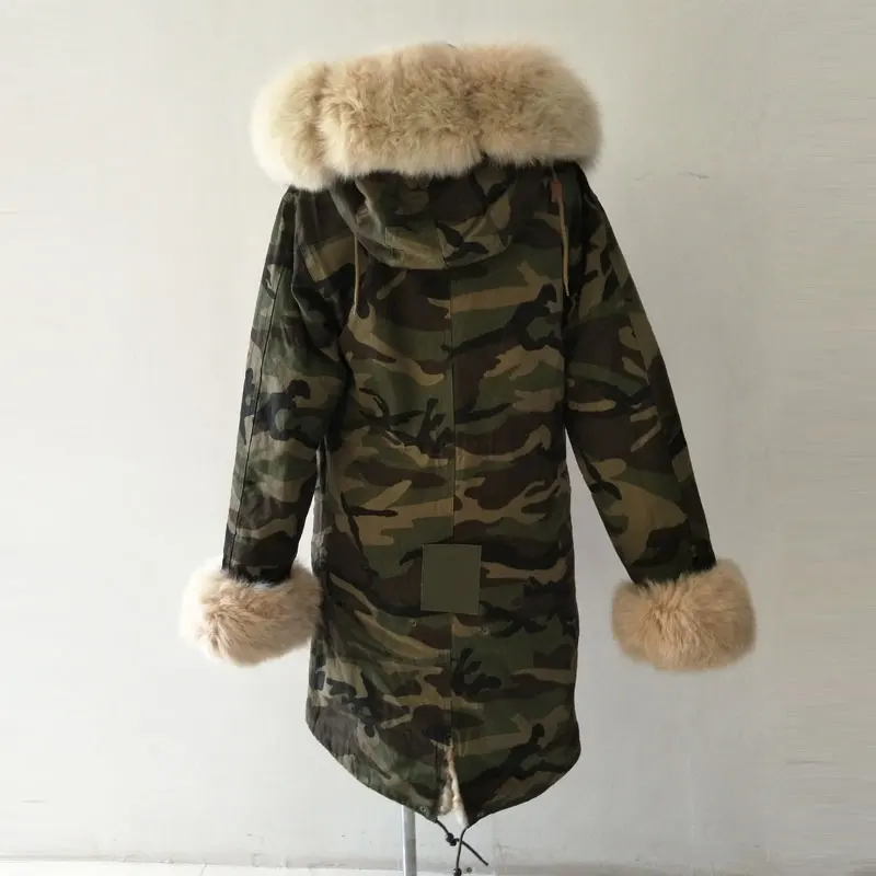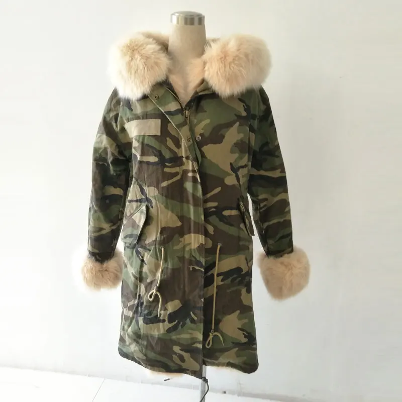 Special Offer Neue Stil Armee Camouflage Jacke Kaninchen Pelz Liner Luxus Jacke Fuchs Pelz Kapuze Pelz Parka Discount 0% Today!