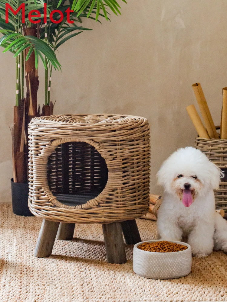 Special Offer Hand Woven Bambus Weben Natürliche Achat Rattan Zwinger Mit Beine Pet Nest Katze Nest Kleine Medium Haus Typ Sommer Vier Jahreszeiten Discount 4% Today!