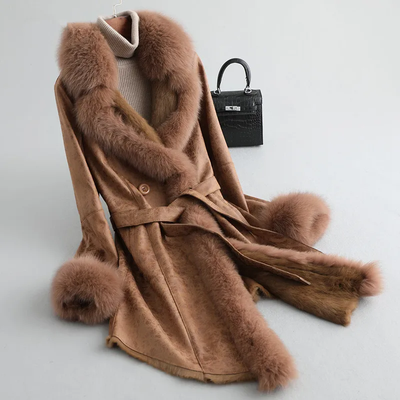 Special Offer AYUNSUE Winter Mantel Frauen Doppel Konfrontiert Echt Kaninchen Pelzmantel Weibliche Fuchs Pelz Kragen Echt Leder Jacken FĂŒr Frauen Kleidung 2020 MEIN Discount 50% Today!