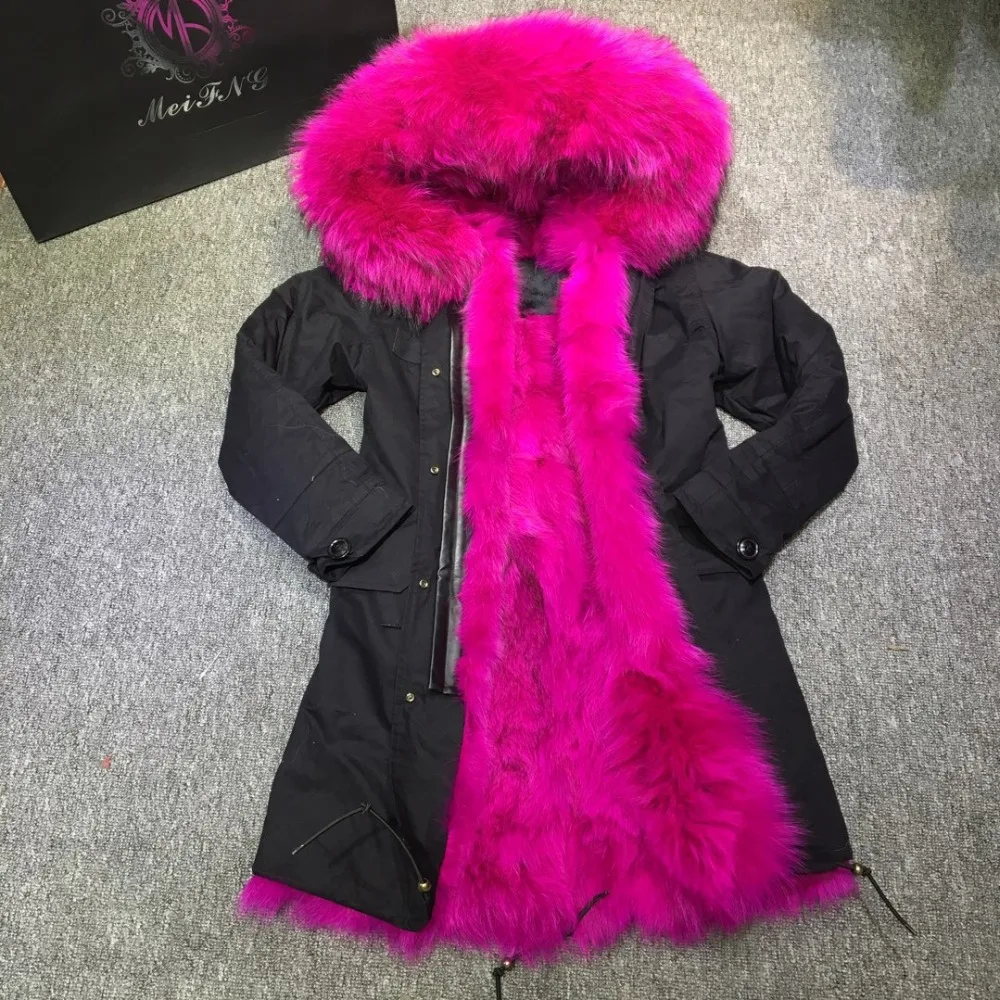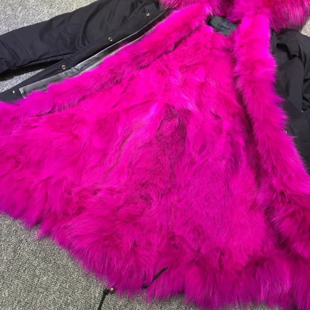 Special Offer 2018 Frauen Lange Echte Echte Natürliche ROSE ROSA Pelzmantel Mit Fuchs Pelz Kapuze Damen Discount 0% Today!