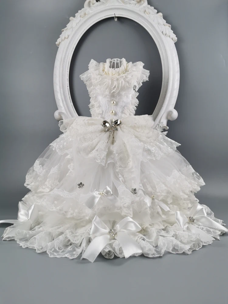 Special Offer Luxuriöse Handgemachte Hund Kleidung Großen Schwanz Lolita Pet Hochzeit Kleider Herrliche Weiße Spitze Pudel Yorkie Malteser Drop Verschiffen Discount 0% Today!