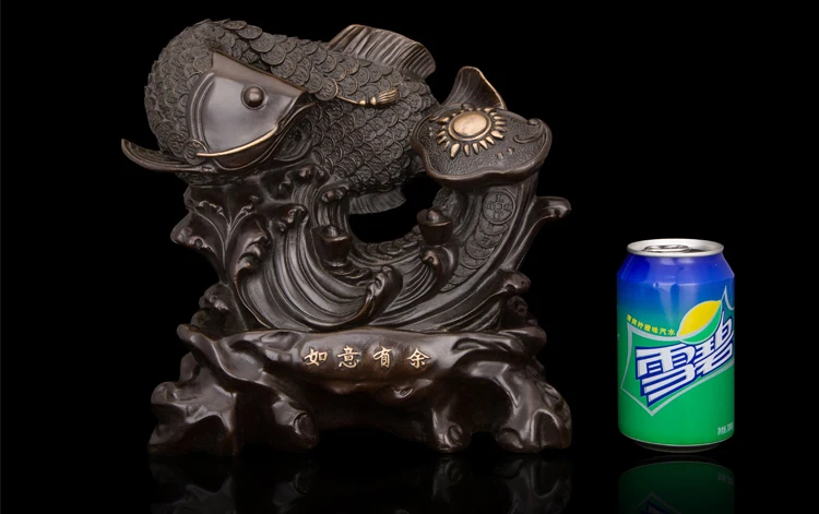 Special Offer Große TOP KÜHLE HOME OFFICE Unternehmen SHOP Talisman Geld Zeichnung Auspicious Arowana Goldenen Fisch RUYI FENG SHUI Bronze Kunst Statue Discount 5% Today!