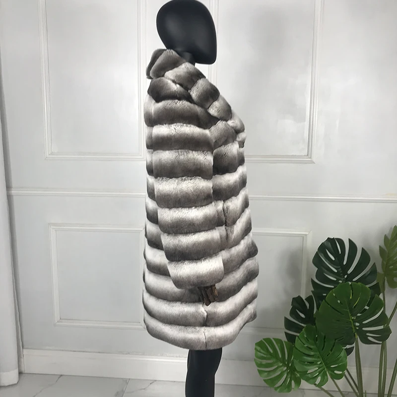 Special Offer 2020 Stilvolle Chinchilla Pelz Jacke Kerbe Kragen Mid-Lange Mantel Parka Stattliche Schönheit Warme Mode Discount 0% Today!