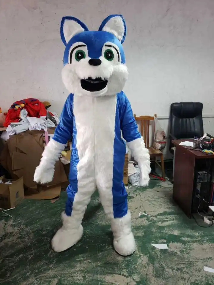 Special Offer Halloween Lange Pelz Blau Husky Wolf Hund Fursuit Maskottchen Kostüm Anzüge Fuchs Cosplay Party Spiel Phantasie Kleid Erwachsene Größe Weihnachten Kleidung Discount 10% Today!