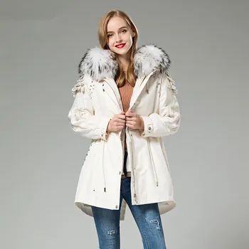 Special Offer Echt Parka Pelz Mantel Weibliche Kaninchen Pelz Liner Lange Jacke Winter Mantel Frauen WaschbĂ€ren Pelz Kragen Warme ĂbergroĂen Jacken MEIN S Discount 90% Today!