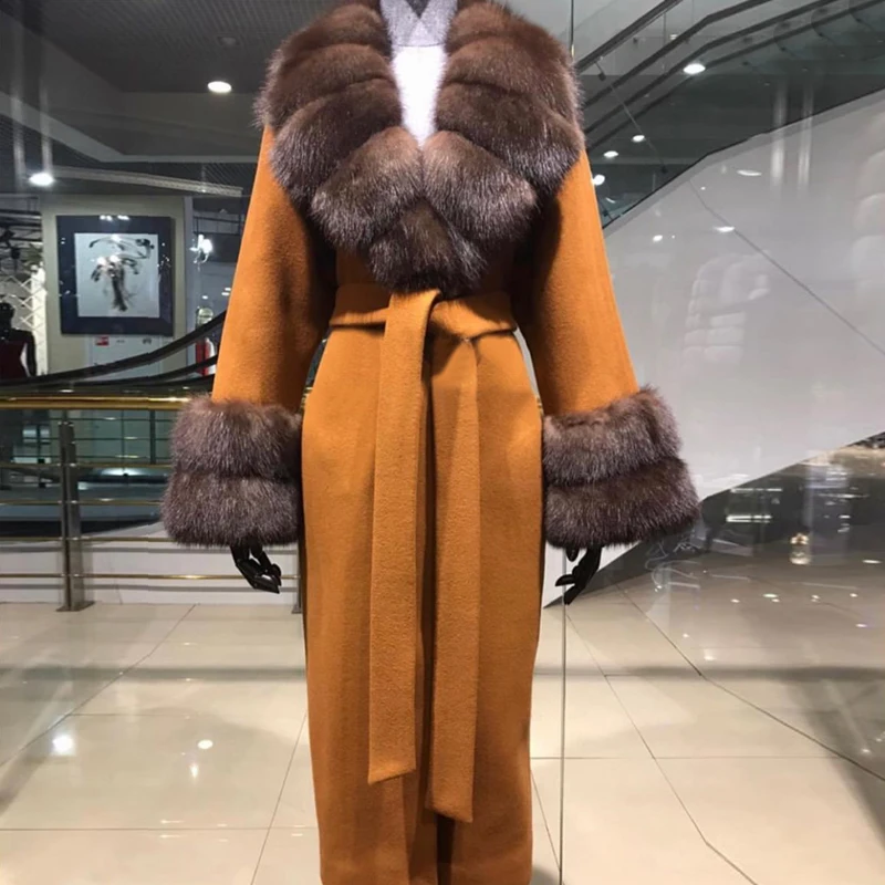 Special Offer 100% Damen Wolle Frauen Woll Mantel Kaninchen Fell ärmel Und Kragen Discount 90% Today!