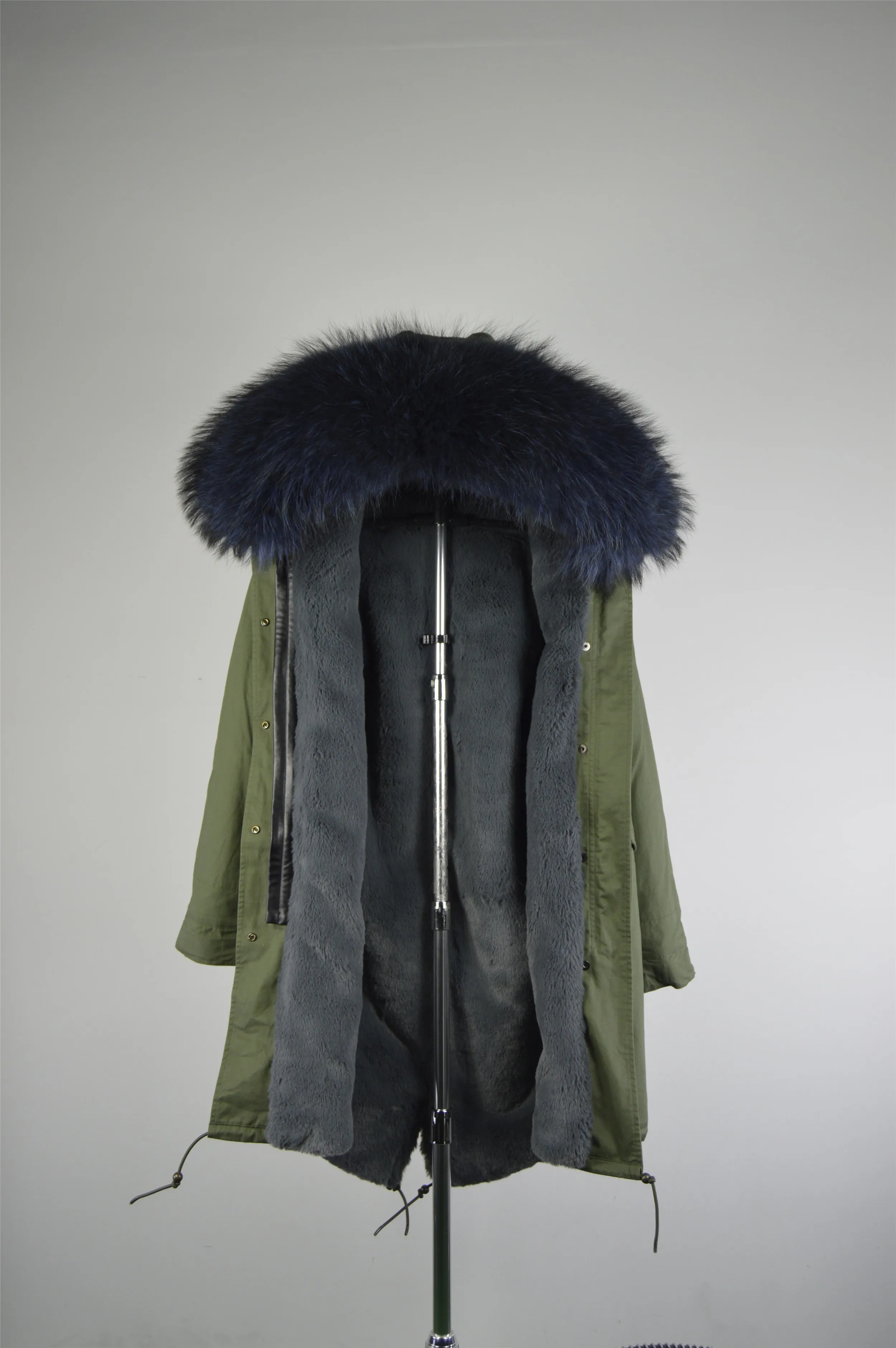 Special Offer Heißer Verkauf Jacke Grau Rex Kaninchen Pelz Gefüttert Parka Mit Schwarz Pelz Kragen Damen Lange Mäntel Discount 0% Today!