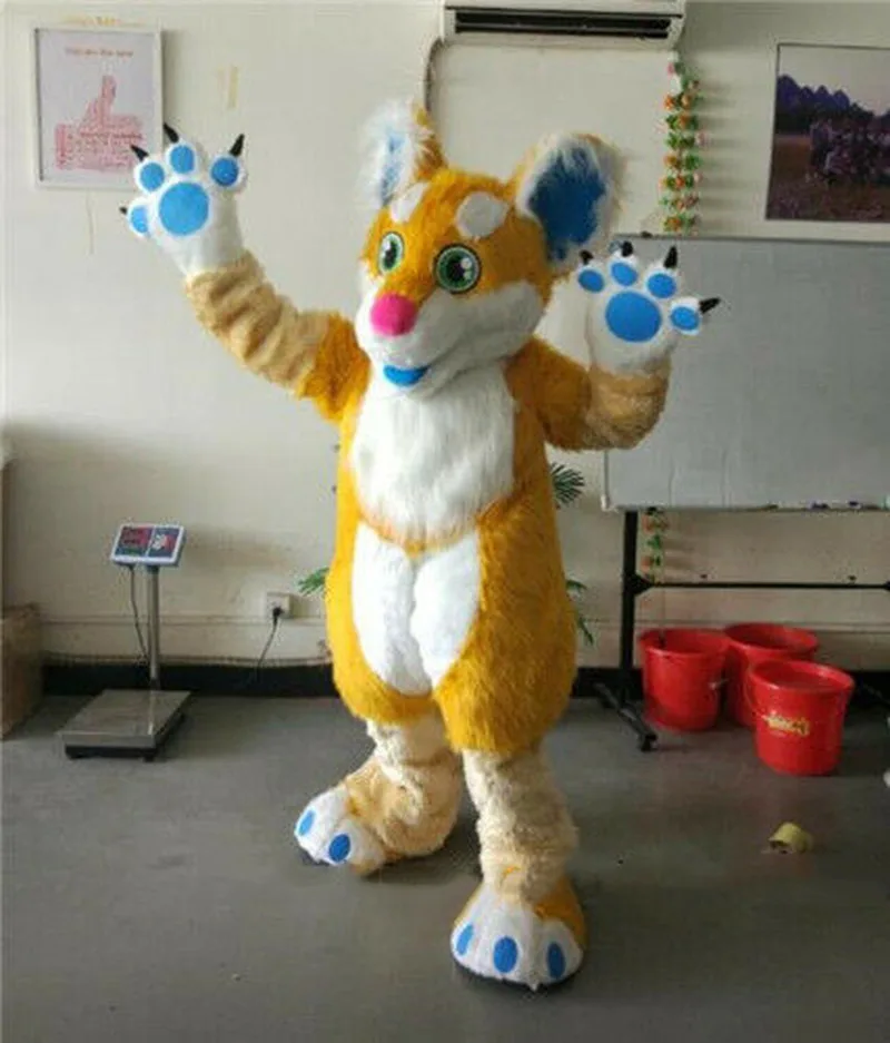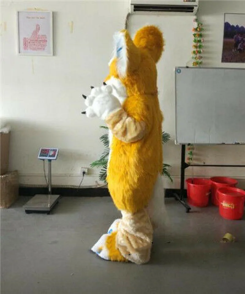 Special Offer Halloween Gelb Lange Pelz Fuchs Husky Hund Fursuit Maskottchen Kostüm Anzug Cosplay Partei Kleid Outfits Werbung Weihnachten Ostern Erwachsene Discount 10% Today!