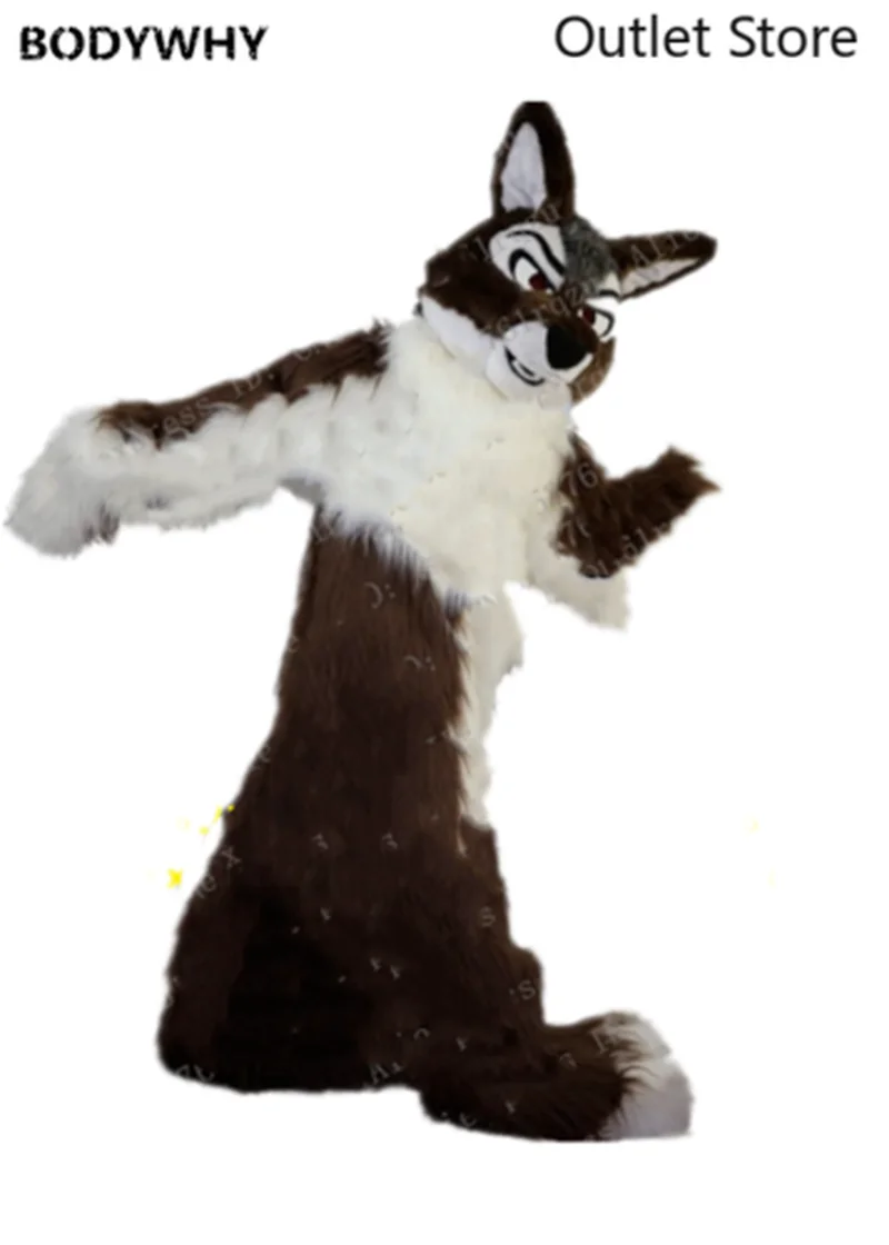 Special Offer Lange Pelz Pelzigen Husky Hund Fuchs Wolf Braun Fursuit Maskottchen Kostüm Cosplay Kleid Weihnachten Halloween Geburtstag Party Ad Öffnung Discount 50% Today!