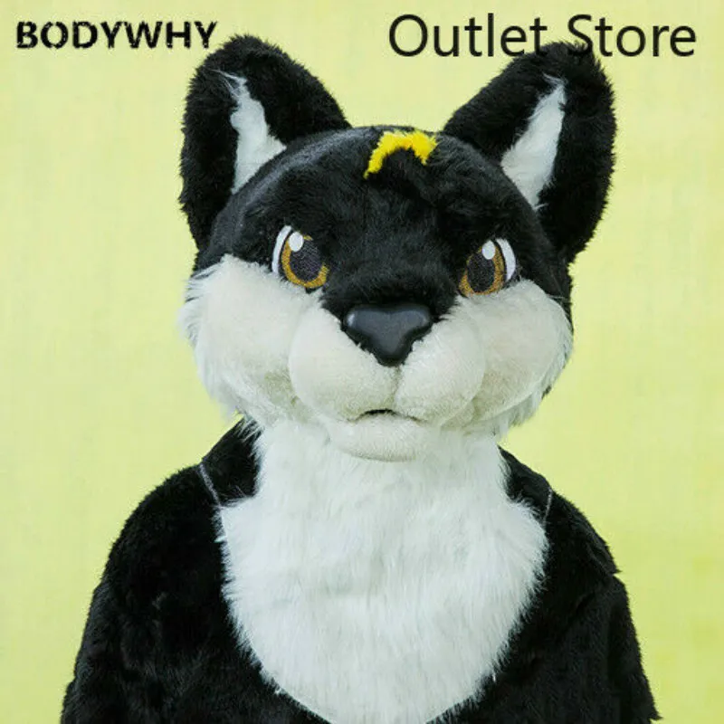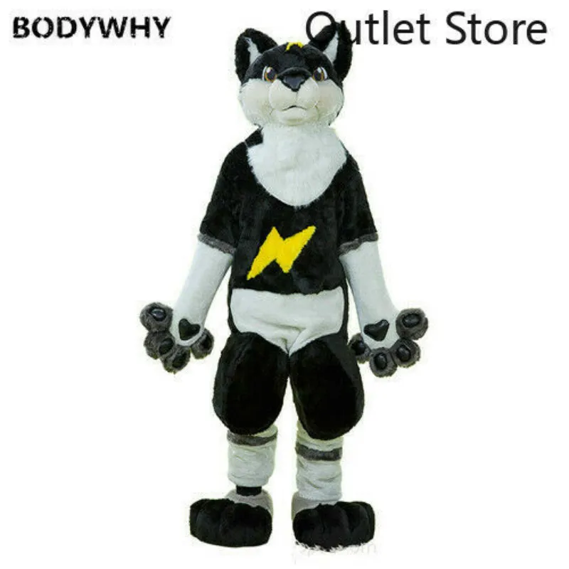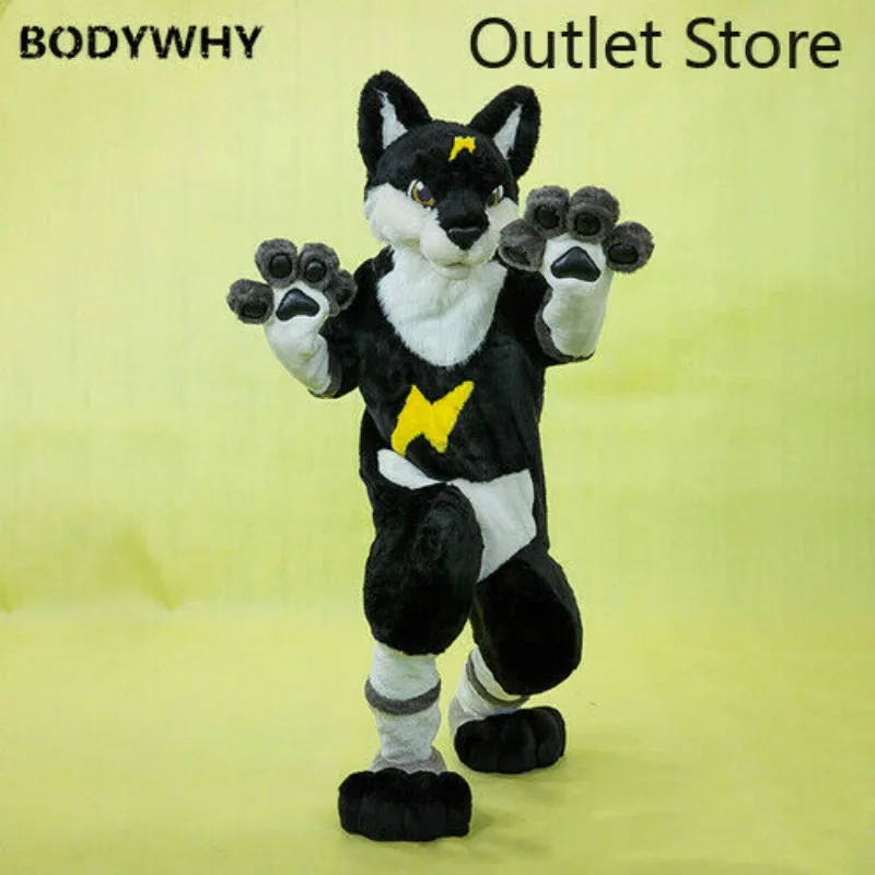 Special Offer Schwarz Lange Fell Husky Fuchs Hund Wolf Fuchs Maskottchen Kostüm Cosplay Party Fursuit Cartoon Kleid Outfits Karneval Halloween Weihnachten Ad Discount 50% Today!