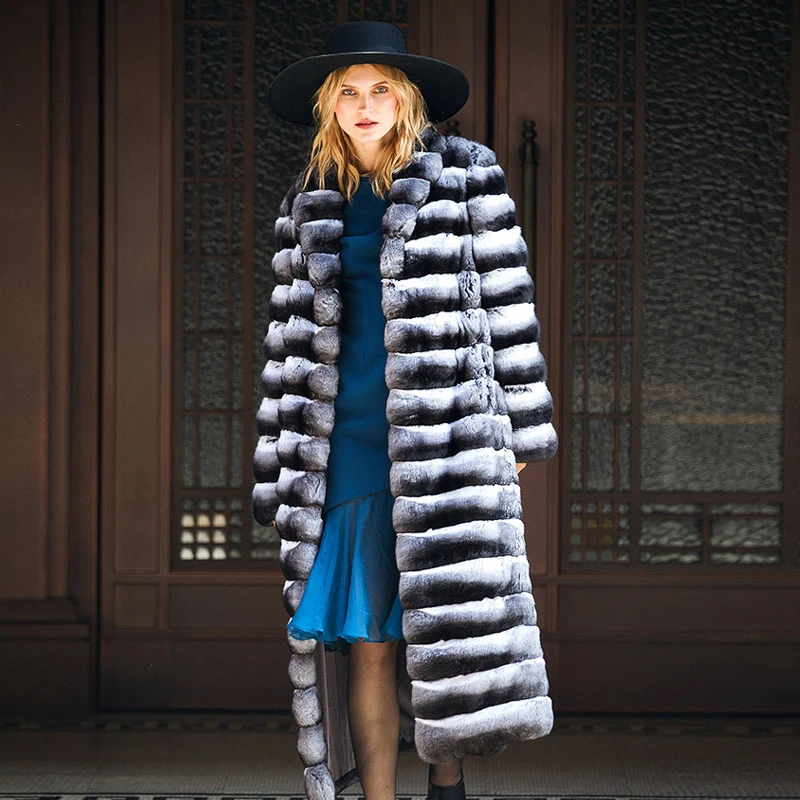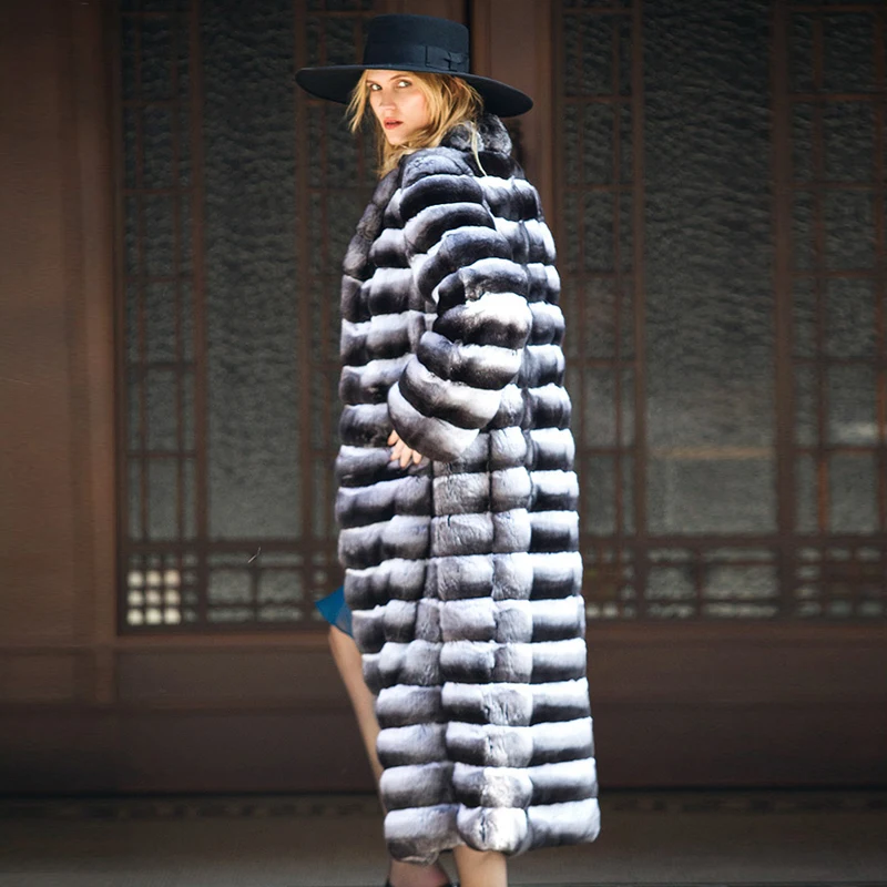Special Offer 2020 Winter Frauen 120CM Lange Real Chinchilla Rex Kaninchen Mantel Mit Revers Kragen Dicke Warme Natürliche Echte Rex Kaninchen Pelz Jacke Discount 31% Today!