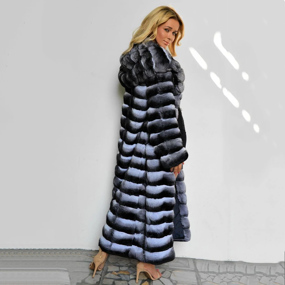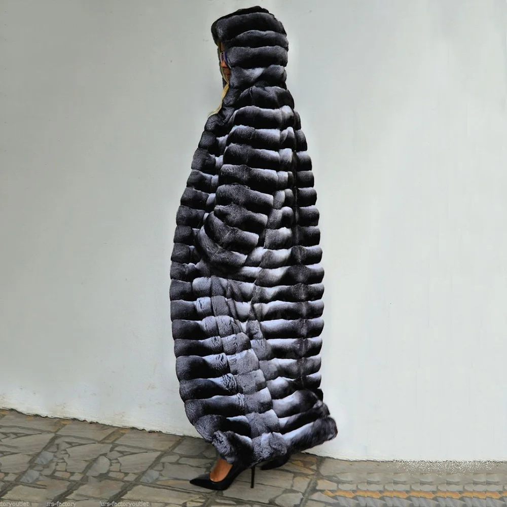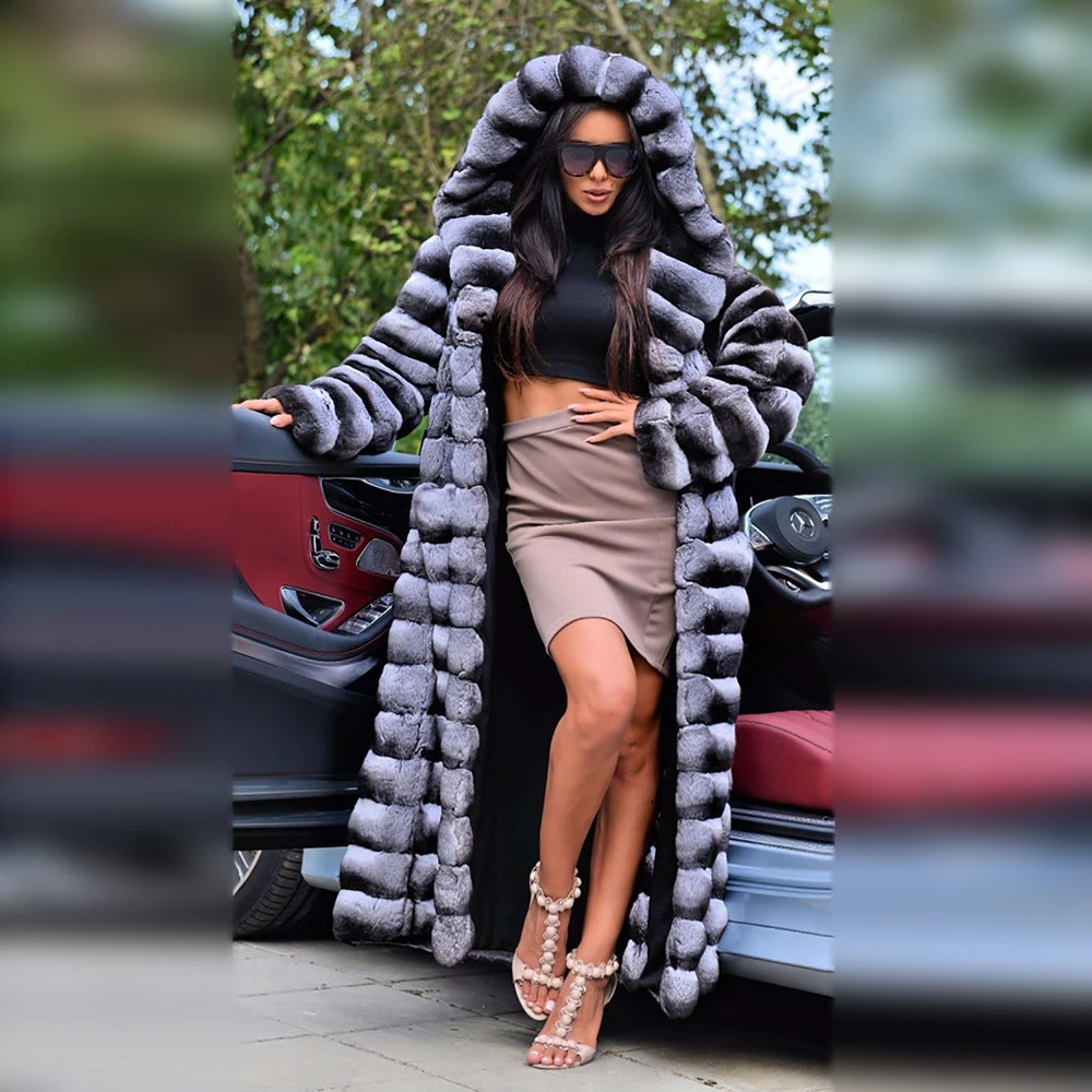 Special Offer 130cm Lange Frauen Natürliche Rex Kaninchen Pelz Mäntel Ganze Haut Aus Echtem Kaninchen Fell Mantel Mit Kapuze Starke Warme Chinchilla Farbe Mäntel Discount 40% Today!