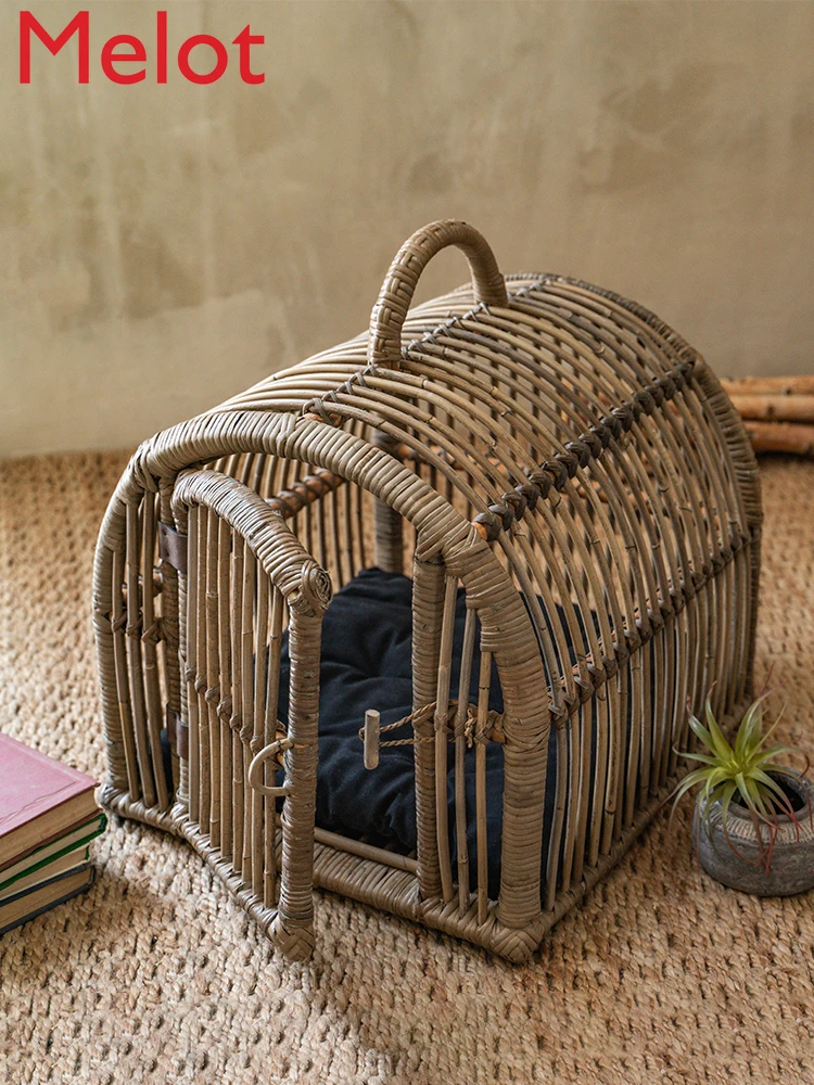 Special Offer Natürliche Indonesischen Achat Handgemachte Reben Woven Hund Käfig Katze Nest Tragbare Haustier Käfig Hund Nest Retro Hund Zelt Hund Liefert Discount 4% Today!