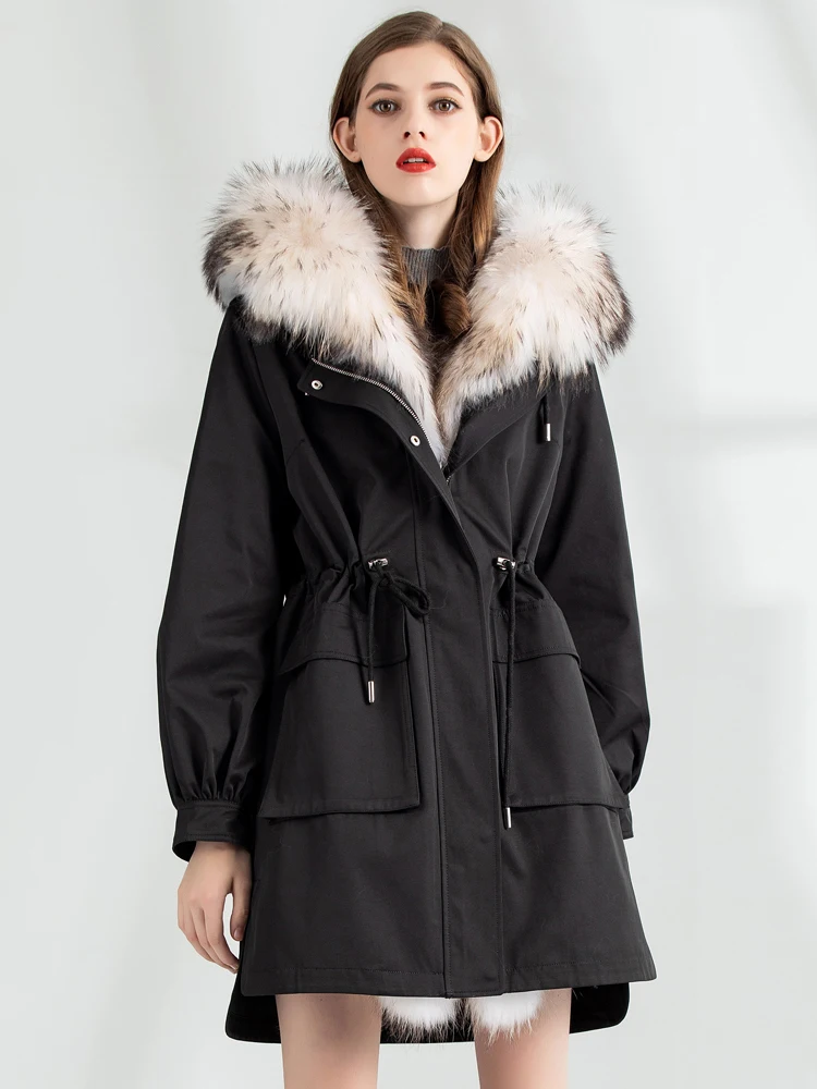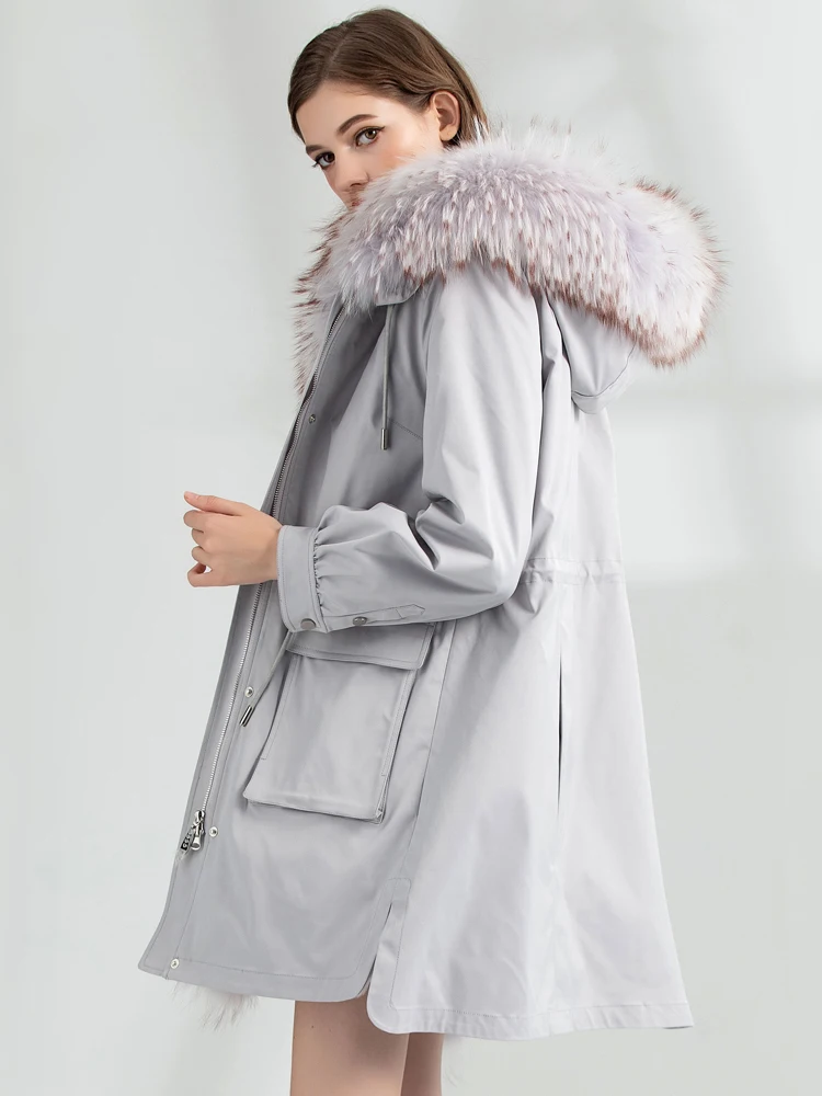 Special Offer AYUNSUE Natürliche Kaninchen Pelz Liner Parka Echtpelz Mantel 2020 Winter Jacke Frauen Waschbären Pelz Kragen Koreanische Lange Graben Mäntel MY3840 Discount 50% Today!