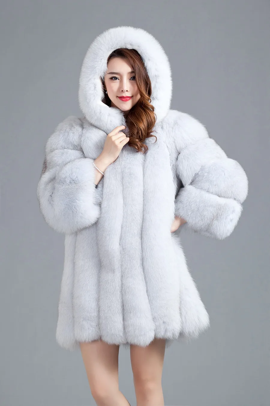 Special Offer Luxus Lady Echten Fuchspelz Mantel Jacke 3/4 Baumwolle Futter Kapuze 3XL Winter-frauen-pelz-trench Würfe Mäntel 3XL VK1488 Discount 54% Today!